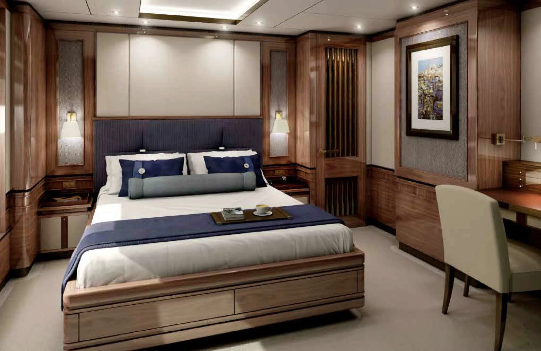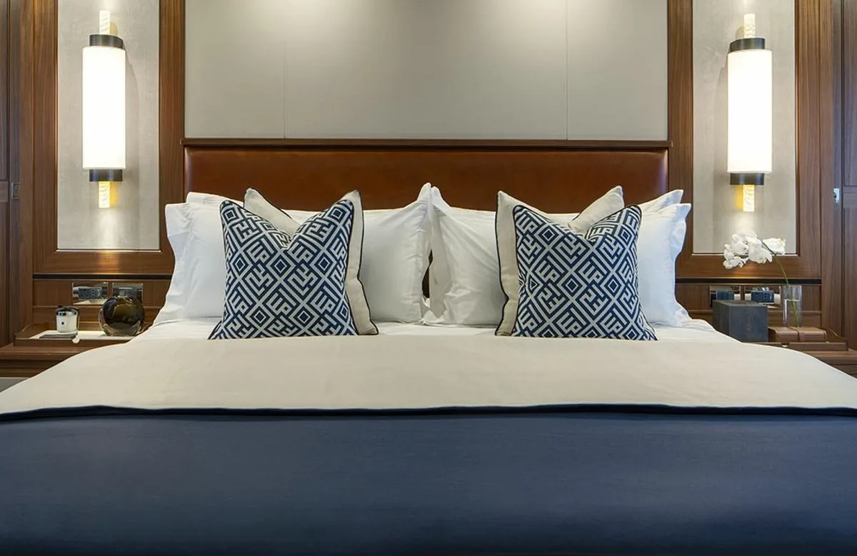Rania offers sumptuous accommodations for up to 12 guests across six beautifully appointed cabins. The master suite is a haven of serenity, offering a private retreat with panoramic views. Three VIP cabins provide an oasis of comfort, each thoughtfully designed to enhance your onboard experience. Two twin cabins complete the ensemble, ensuring every guest enjoys the utmost in comfort and privacy. As you awaken to the gentle sway of the ocean, the promise of another extraordinary day at sea awaits, crafted just for you.