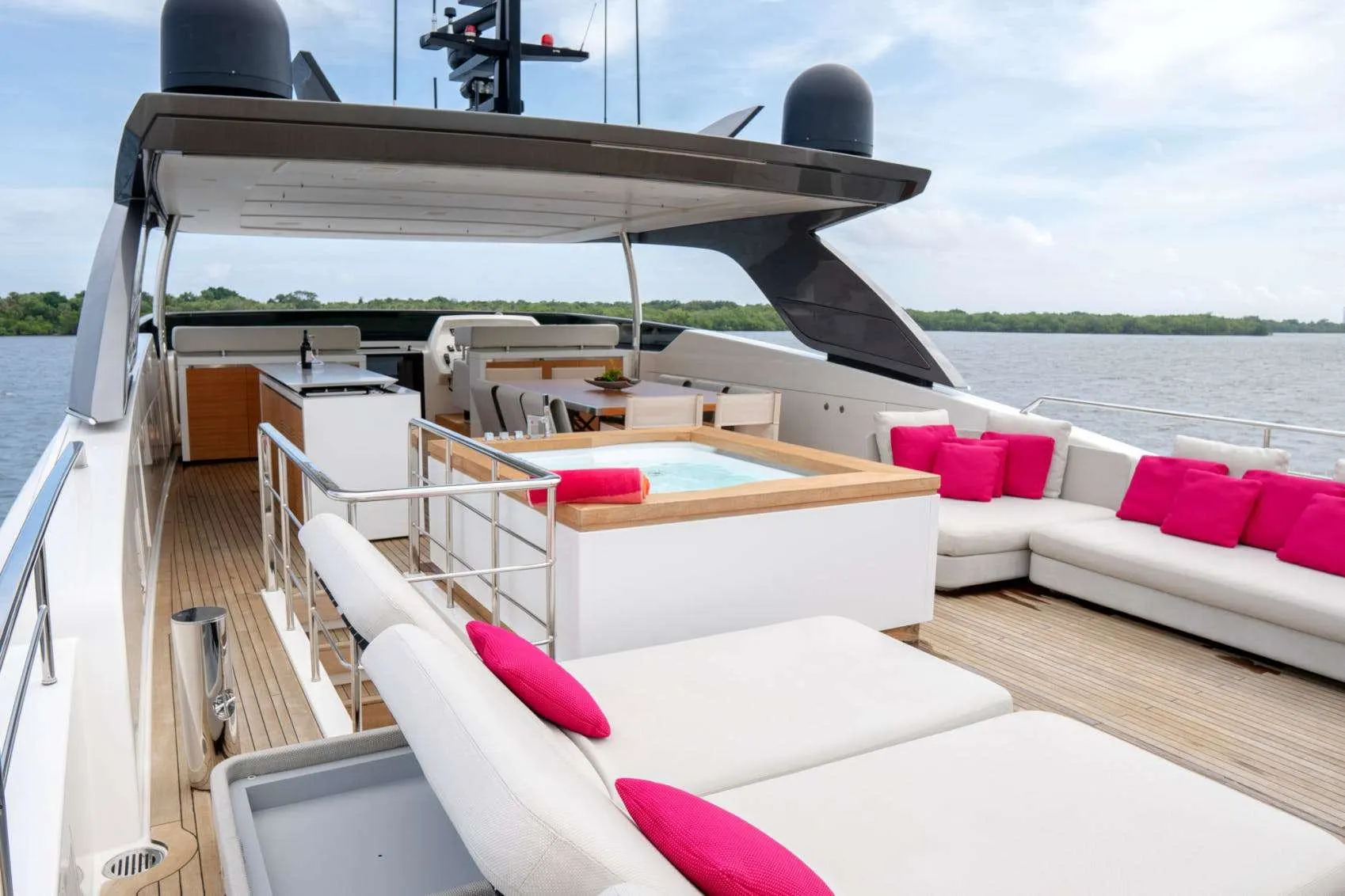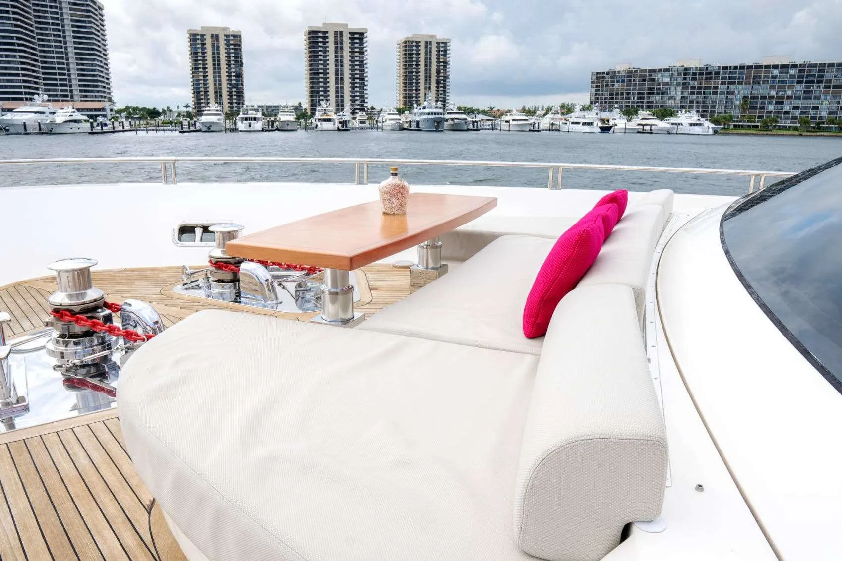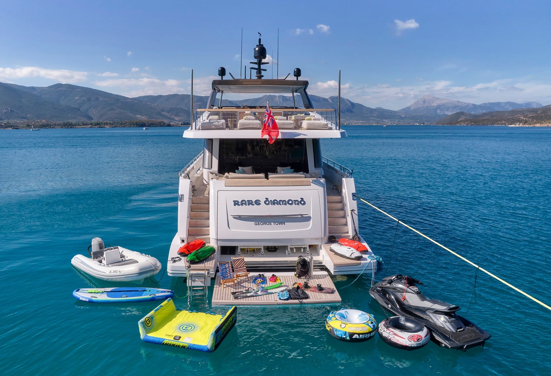 Aboard Rare Diamond, life unfolds with seamless elegance and comfort, designed for both tranquil retreats and lively gatherings. The sun deck serves as a haven for sun worshippers, while an exterior bar offers a chic setting for sunset cocktails. Inside, the yacht is equipped with state-of-the-art amenities including Wi-Fi, satellite TV, and air conditioning, ensuring you remain connected and comfortable. The hydraulic swim platform invites refreshing dips into the sea, and the stabilizers both at anchor and underway guarantee a smooth and restful voyage, no matter where your travels take you.