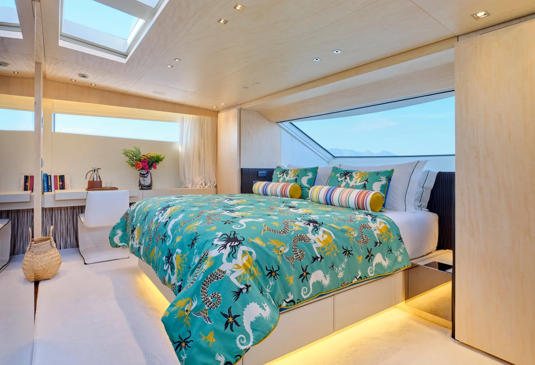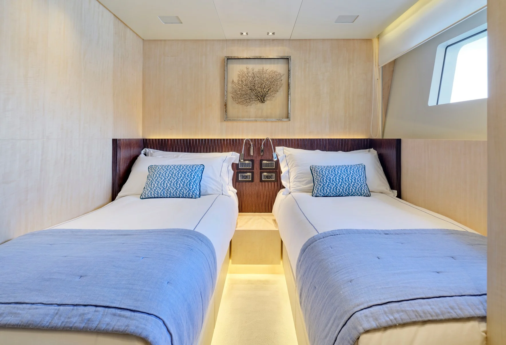 The Rare Diamond accommodates up to 11 guests across five beautifully appointed cabins, offering a sanctuary of relaxation and refinement. The master suite, along with two VIP and two twin suites, exudes a sophisticated charm, where each morning begins with the gentle sway of the ocean and sunlight filtering through the panoramic windows. The cabins are havens of tranquility, adorned with fine materials and thoughtful touches, providing an intimate escape after a day of exploration. The attentive six-member crew ensures every need is met, allowing you to fully unwind and enjoy the serene ambiance.