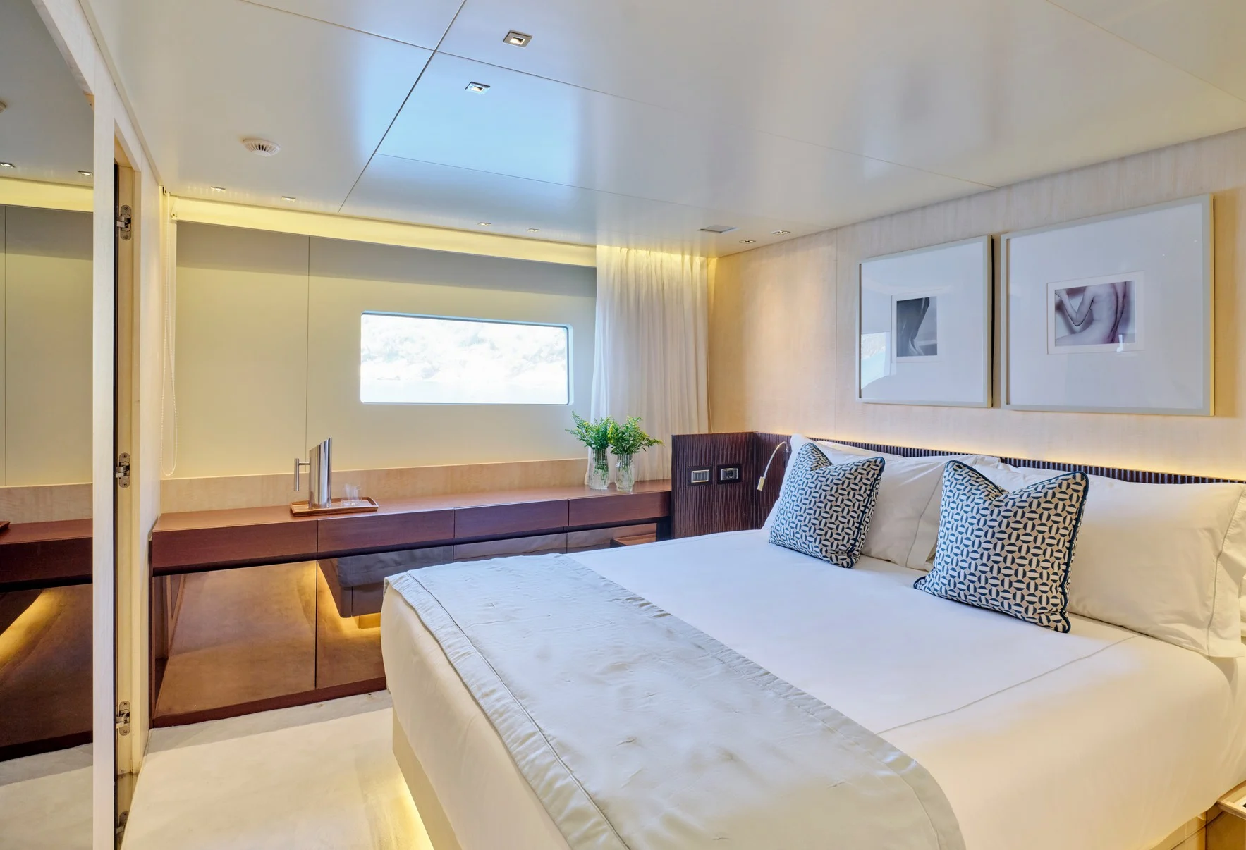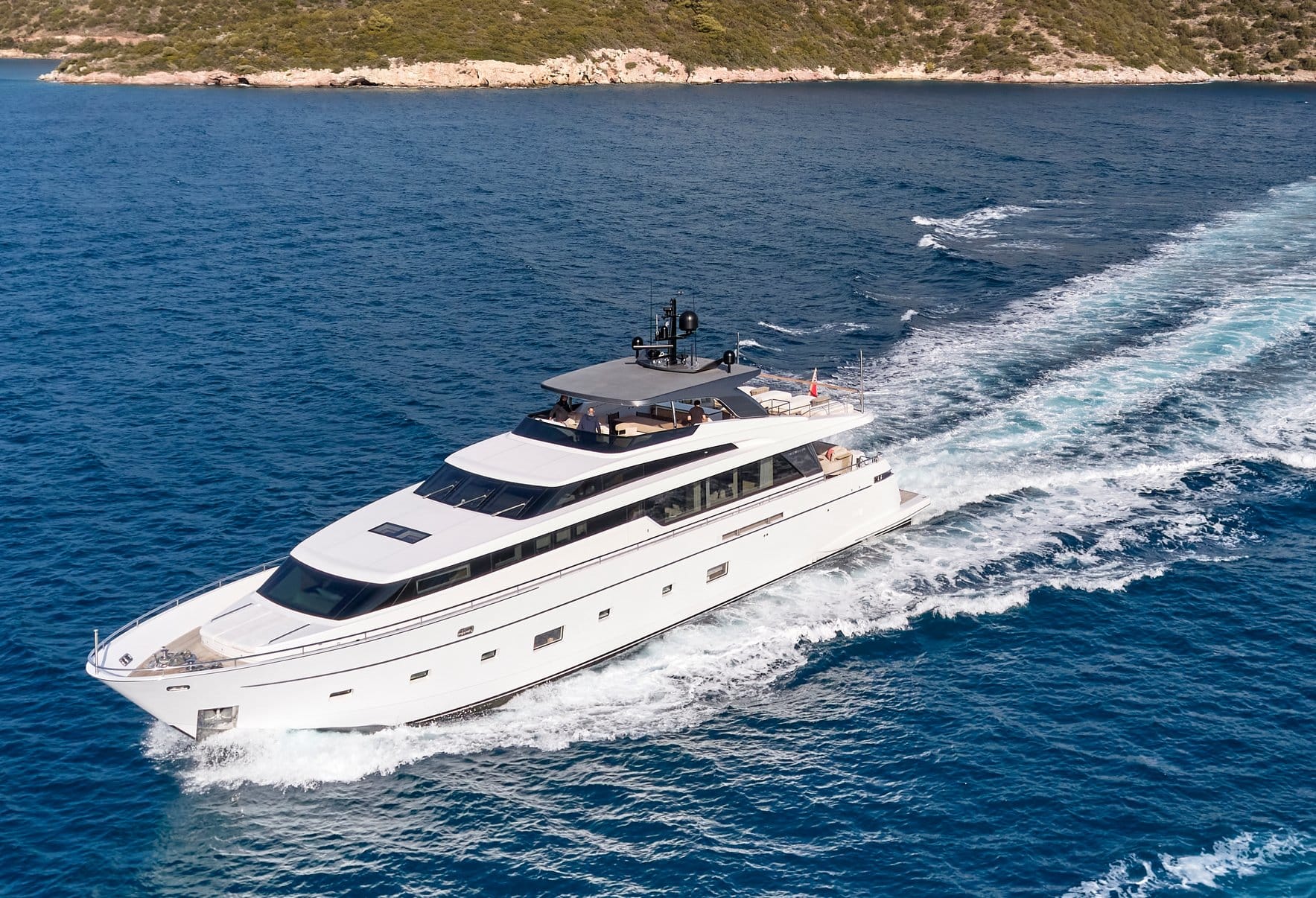 Embark on a journey aboard the Rare Diamond, a striking 104-foot motor yacht that gracefully glides through the Mediterranean’s azure waters. Crafted in 2011 by the renowned Sanlorenzo shipyard, this vessel presents a harmonious blend of Italian craftsmanship and Scandinavian design by Della Role Design. With its sleek planing hull, Rare Diamond offers an exhilarating ride, reaching speeds of up to 28 knots, yet ensures a serene and steady cruise at 11 knots. Aboard, you are invited to bask in the sun on the expansive deck or sip a refreshing cocktail while savoring panoramic views of picturesque coastlines, from the vibrant shores of Mykonos to the tranquil coves of Turkey. Whether discovering vibrant ports or secluded beaches, each day aboard promises new adventures and cherished memories.