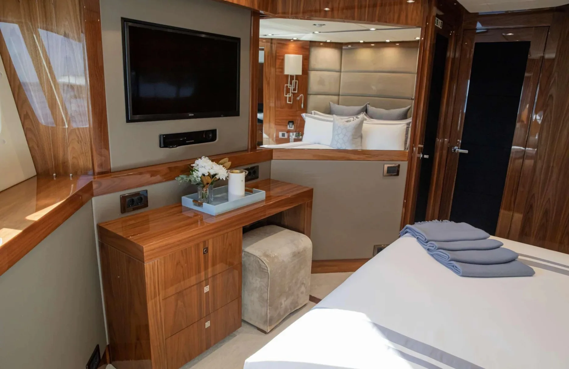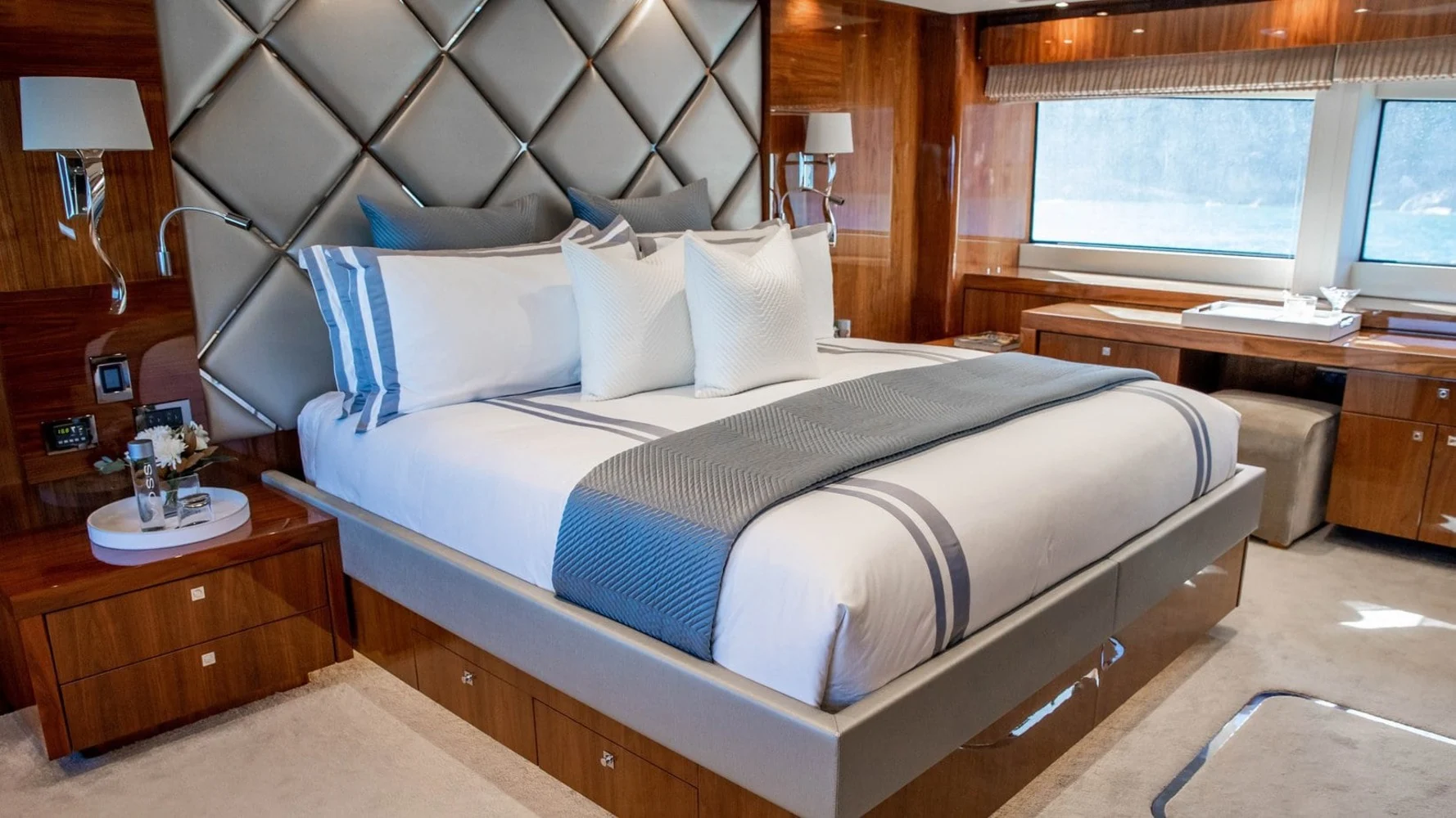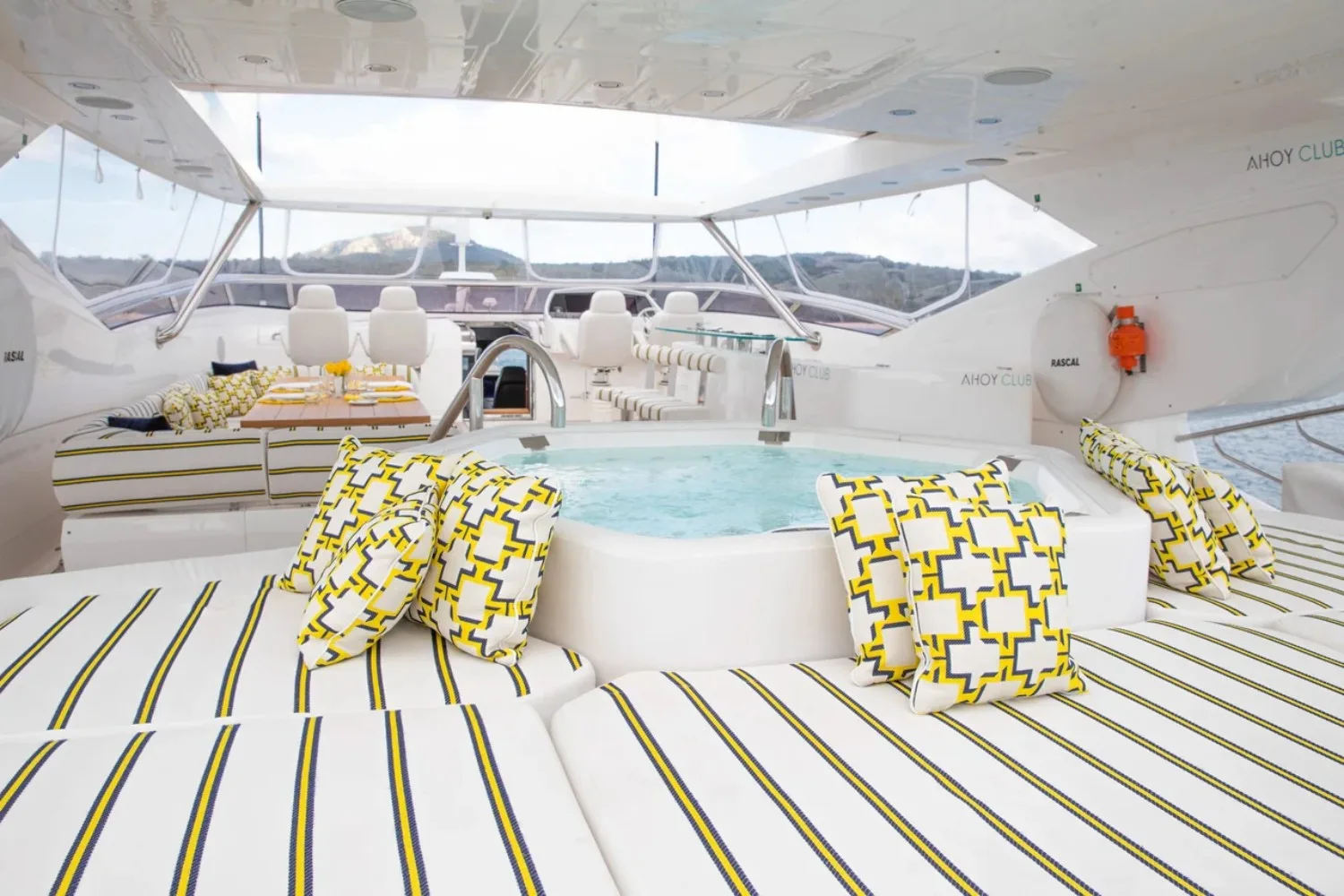 Rascal welcomes up to ten guests into a realm of unparalleled comfort. The master suite, with its panoramic views, promises serene mornings as sunlight dances across the water. Each of the five cabins is a sanctuary, designed to offer both privacy and tranquility. Imagine waking to the gentle sway of the yacht, the promise of a day filled with exploration and indulgence awaiting just beyond your door.