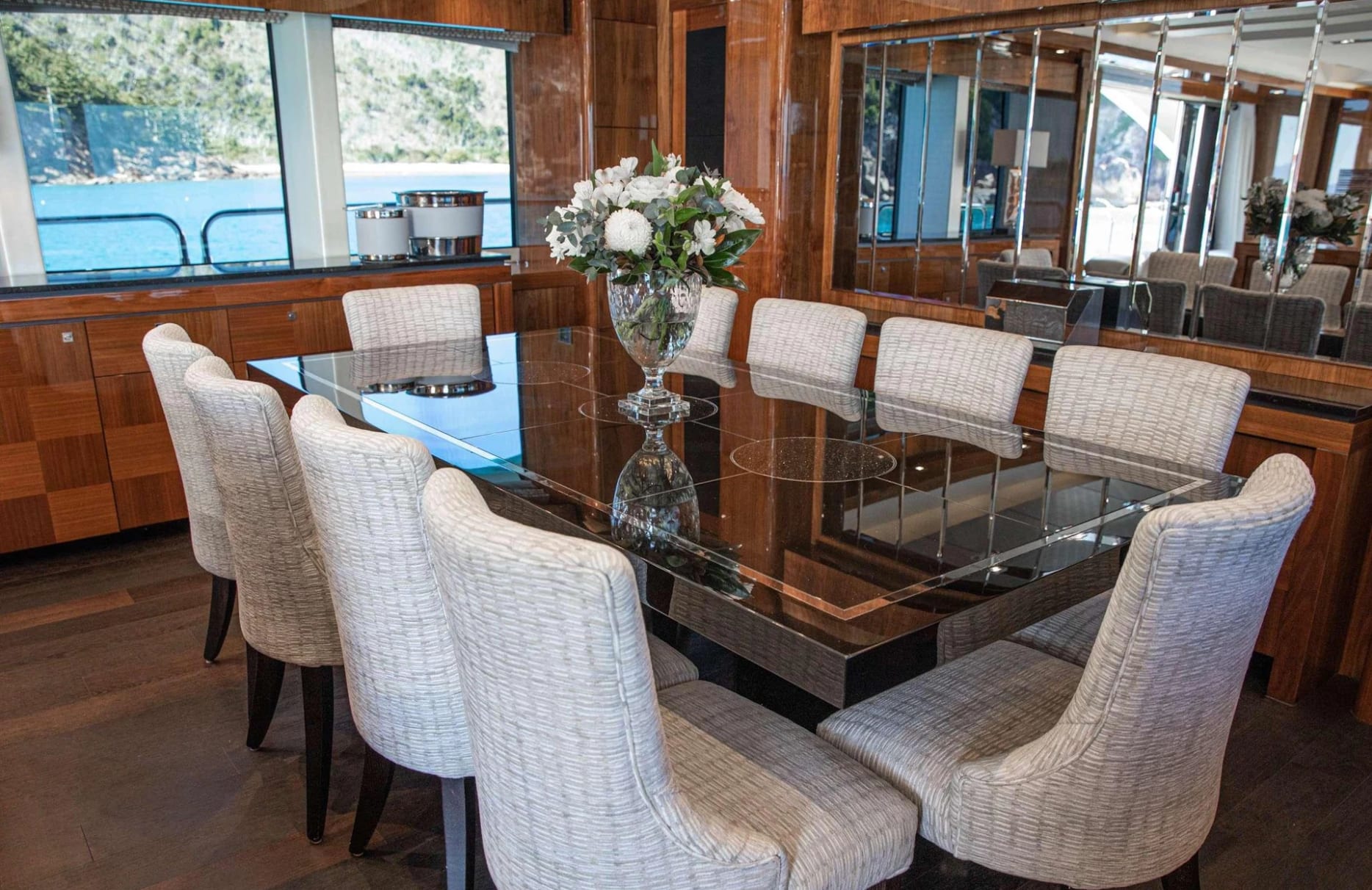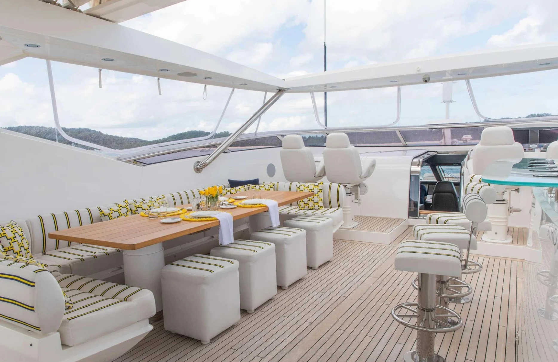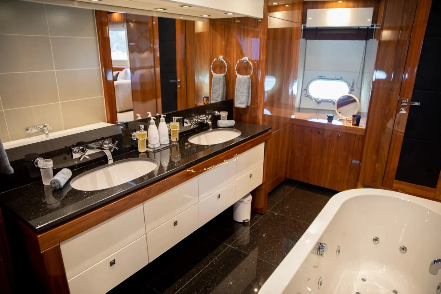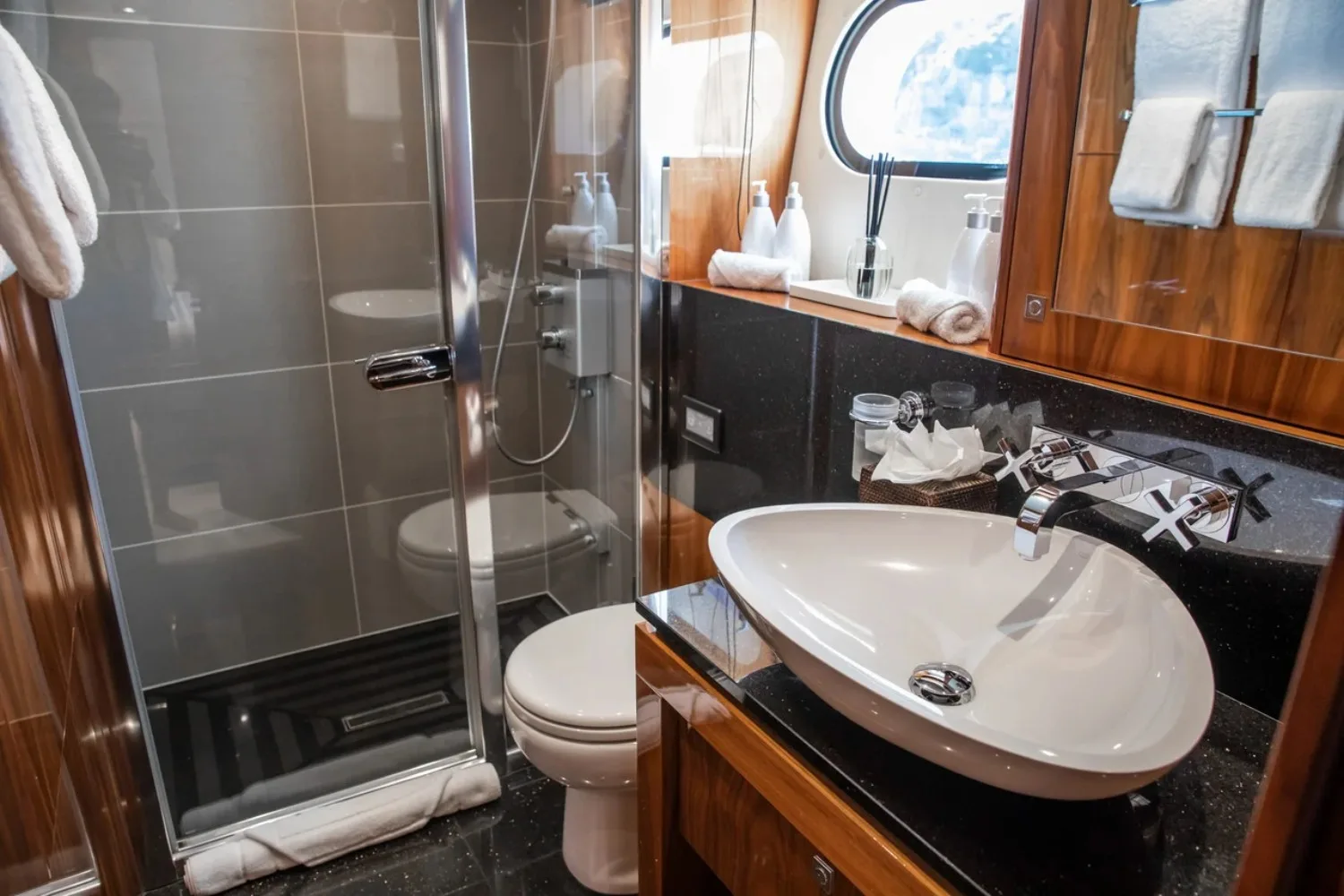 Rascal welcomes up to ten guests into a realm of unparalleled comfort. The master suite, with its panoramic views, promises serene mornings as sunlight dances across the water. Each of the five cabins is a sanctuary, designed to offer both privacy and tranquility. Imagine waking to the gentle sway of the yacht, the promise of a day filled with exploration and indulgence awaiting just beyond your door.