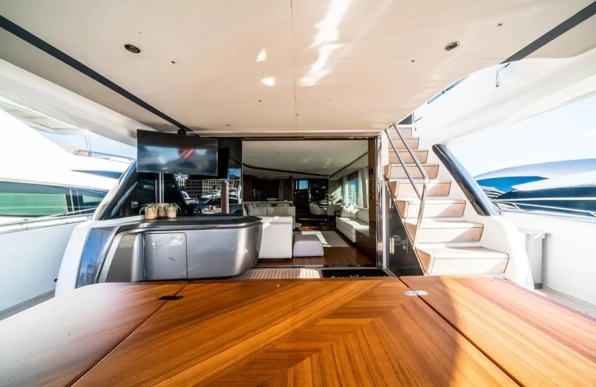 Step into a world of maritime elegance aboard Record Year, a vessel that effortlessly blends sleek design with the promise of adventure. Crafted by the renowned British shipyard Princess in 2021, this 85-foot masterpiece beckons those with a spirit for exploration. As you navigate the azure waters of the Caribbean, the yacht’s impressive performance ensures a seamless journey, cruising comfortably at 20 knots and capable of reaching exhilarating speeds of up to 33 knots. With its lightweight yet robust GRP hull, Record Year is designed for both spirited voyages and tranquil moments at anchor, offering you the chance to indulge in both the thrill of the sea and the serenity of secluded coves.