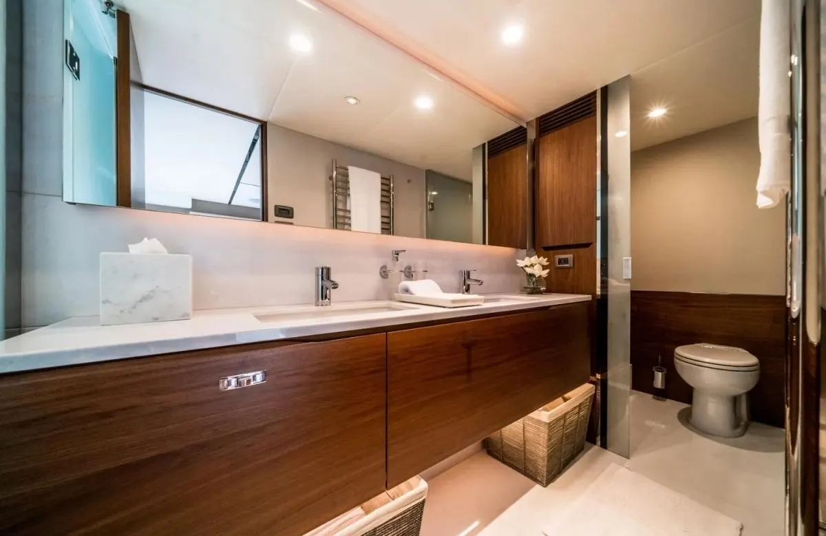 Life aboard Record Year is a symphony of comfort and style. As you savor the cool breeze on the open deck, the yacht’s stabilizers ensure a smooth experience whether underway or at rest. Inside, the atmosphere is one of refined tranquility, where air conditioning provides a respite from the tropical sun, and reliable Wi-Fi keeps you connected to the world beyond the horizon. Every moment is tailored to your desires, whether you’re enjoying a quiet evening under the stars or hosting a lively gathering with friends.
