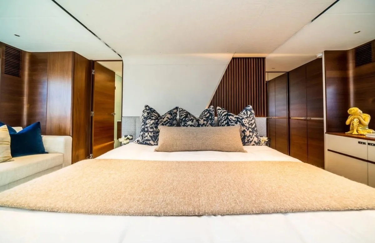Record Year invites up to eight guests to rest in its luxurious embrace, offering four elegantly appointed suites. Wake each morning in the spacious master suite, where the gentle sway of the ocean sets a soothing rhythm to your day. The VIP cabin and flexible double or twin configurations cater to your group’s unique needs, ensuring every guest finds their sanctuary. With the attentive yet unobtrusive service of three crew members, each detail is attended to, allowing you to fully immerse yourself in this floating haven.