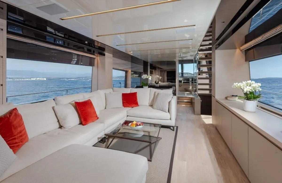 Embark on a journey of elegance and serenity aboard the Regine Of Cannes, a masterful creation by Sanlorenzo with interiors curated by Officina Italiana Design. This 25-meter yacht, crafted in 2020, offers an exquisite blend of sophistication and performance, gliding effortlessly through the waters at speeds up to 30 knots. As you explore the vast seas, the yacht’s range of 740 nautical miles invites you to discover distant shores. Aboard Regine Of Cannes, each day is a canvas for unforgettable experiences, where bespoke service from a dedicated crew of three ensures every moment is tailored to your desires.