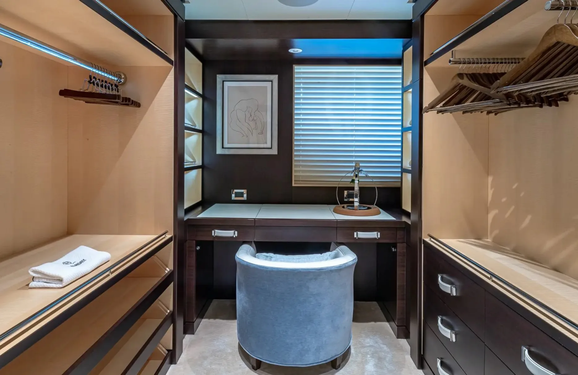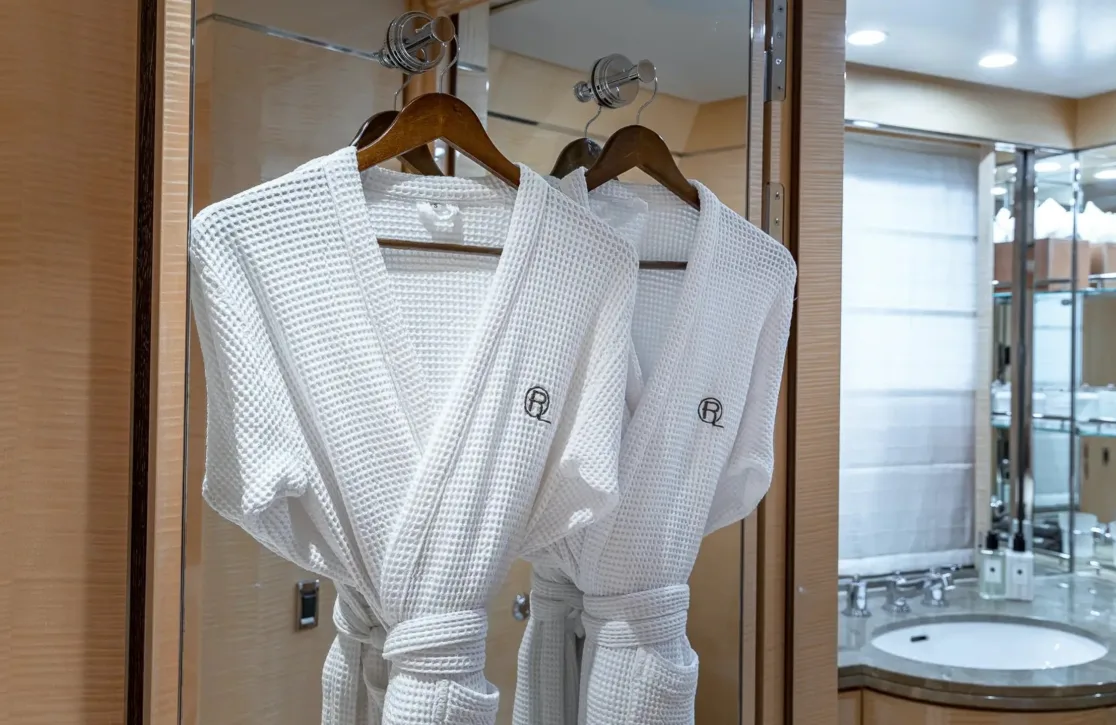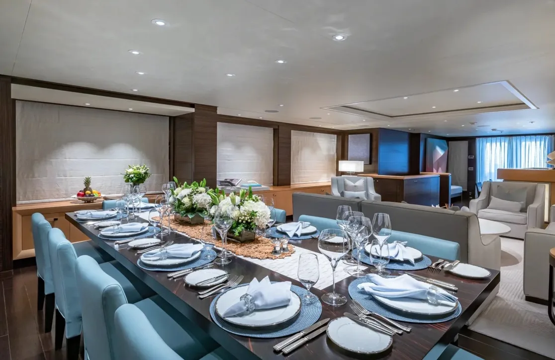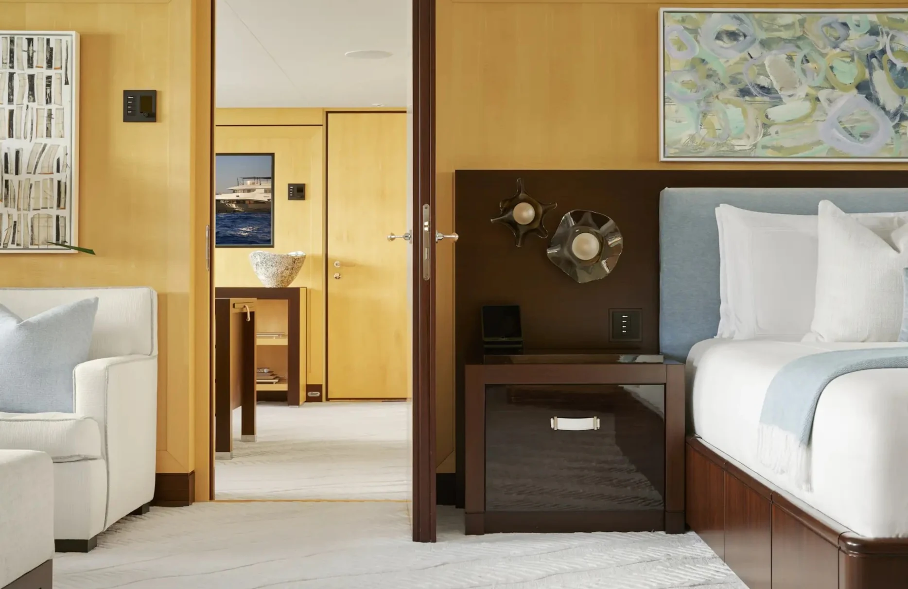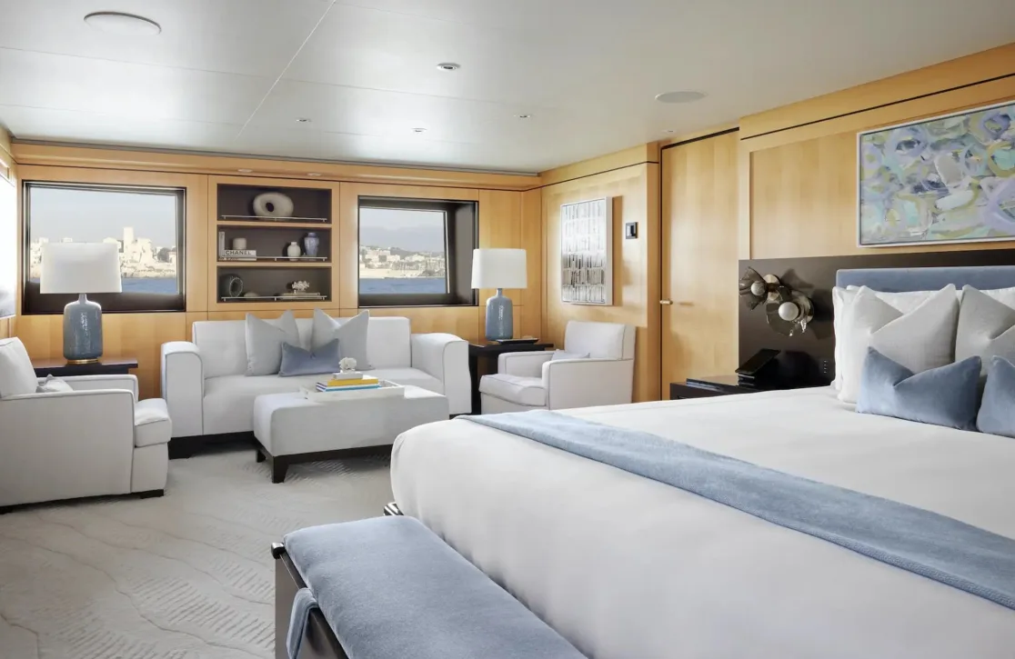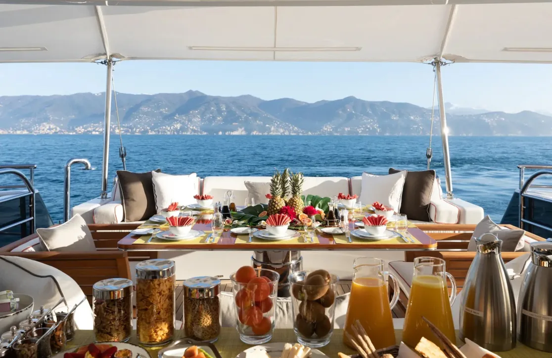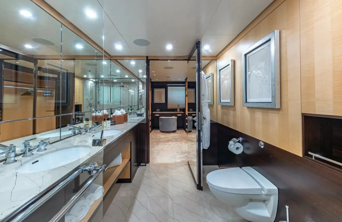 Revelry accommodates up to 12 guests across six opulent cabins, each a sanctuary of comfort and style. The full-beam master suite, with its private lounge, en-suite bath, and walk-in wardrobe, offers a personal retreat. Guests will find restful nights in the VIP stateroom, double cabin, and two convertible cabins with pullman beds, each thoughtfully designed to provide a tranquil haven. Awaking to the gentle sway of the sea, each morning promises a new adventure, with the assurance that the day’s end will bring you back to the refined comfort of your private quarters.