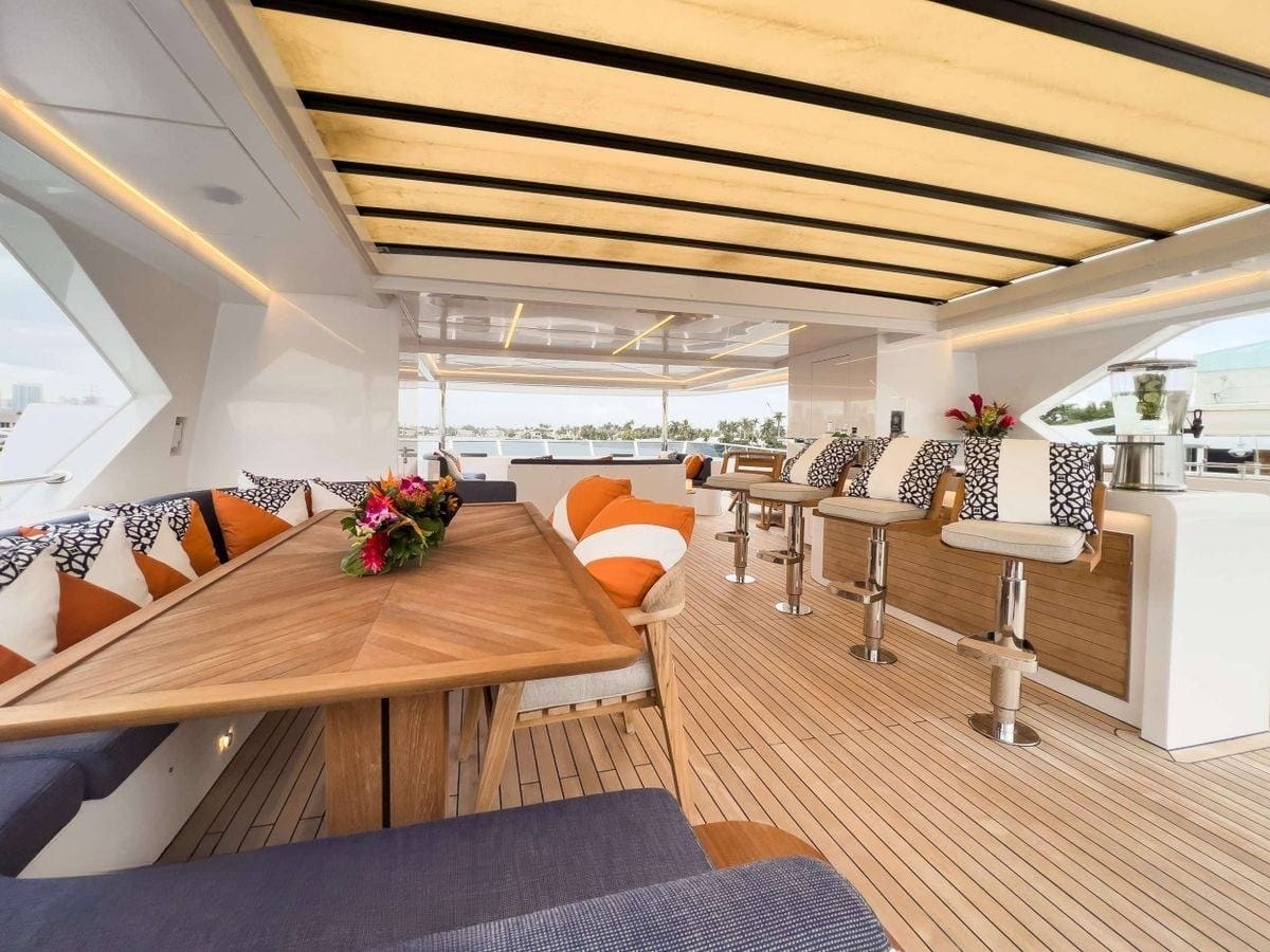 Life on board Rising Dawn is a delicate balance of relaxation and indulgence. Picture yourself unwinding at the beach club, poised at the water’s edge, where the gentle sound of the sea complements your every moment. The sun deck beckons for sun-drenched afternoons, while the deck Jacuzzi offers a sanctuary for soaking in breathtaking vistas. Stay connected with high-speed Wi-Fi, and revel in the perfect climate maintained by an advanced air conditioning system. As day turns to night, the exterior bar becomes the heart of evening gatherings, where stories are shared and time seems to stand still.