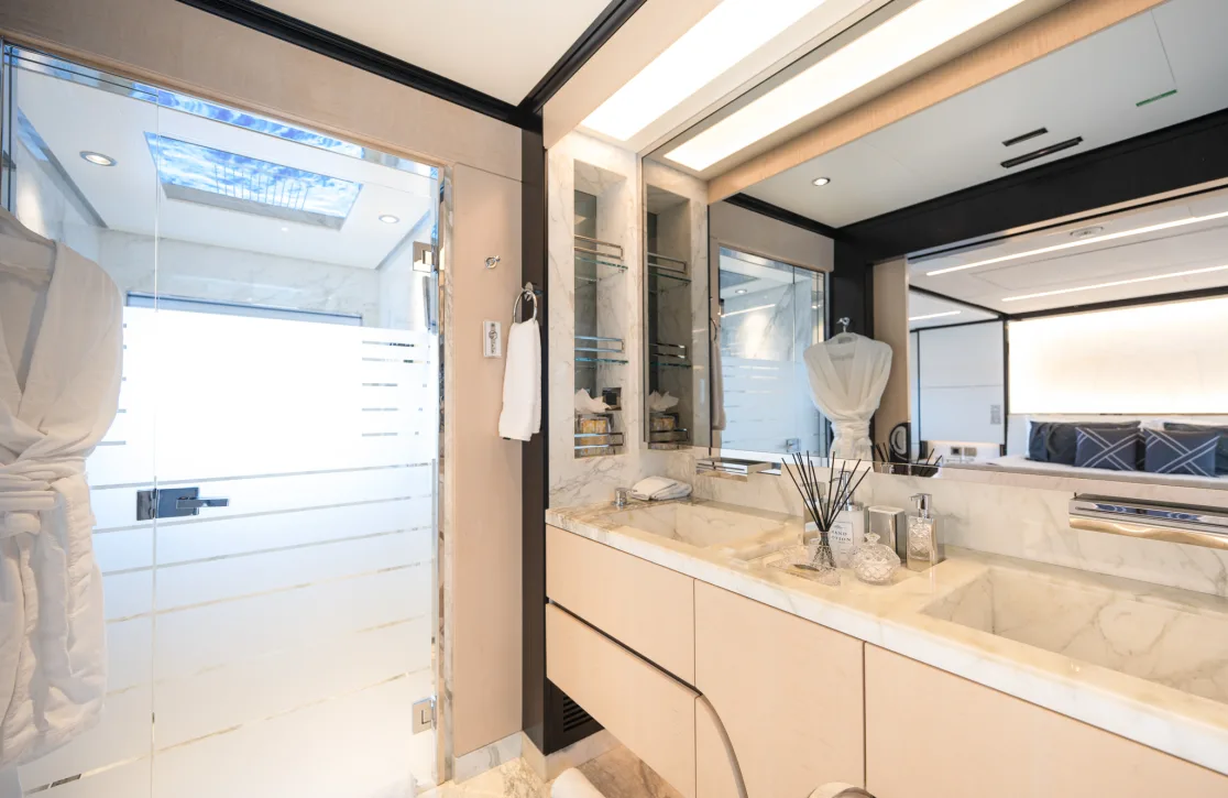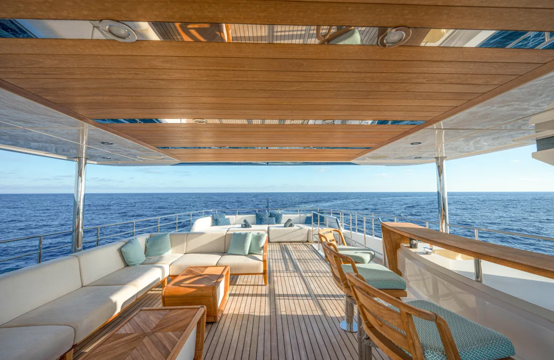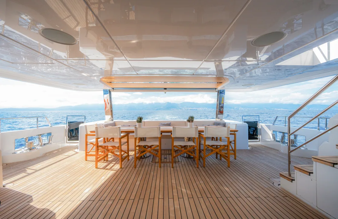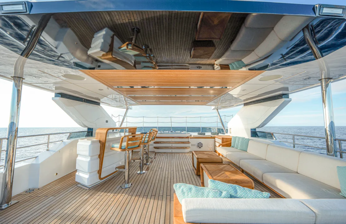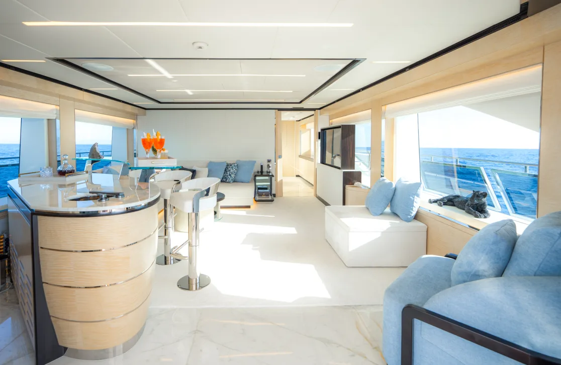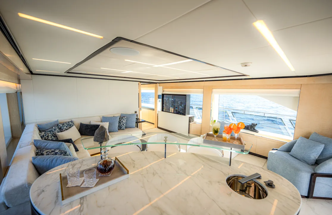 The refined ambiance aboard Rocket ONE invites guests to immerse themselves in a world of serene enjoyment. The on-deck jacuzzi offers a perfect setting for sipping a refreshing drink as the sun sets over the horizon. Indulge in the seamless blend of indoor and outdoor spaces, with climate-controlled interiors that ensure comfort in any weather. Enjoy the state-of-the-art Wi-Fi to stay connected as you unwind on the sun deck or relax by the exterior bar, where stories of the day’s adventures are shared under the stars.