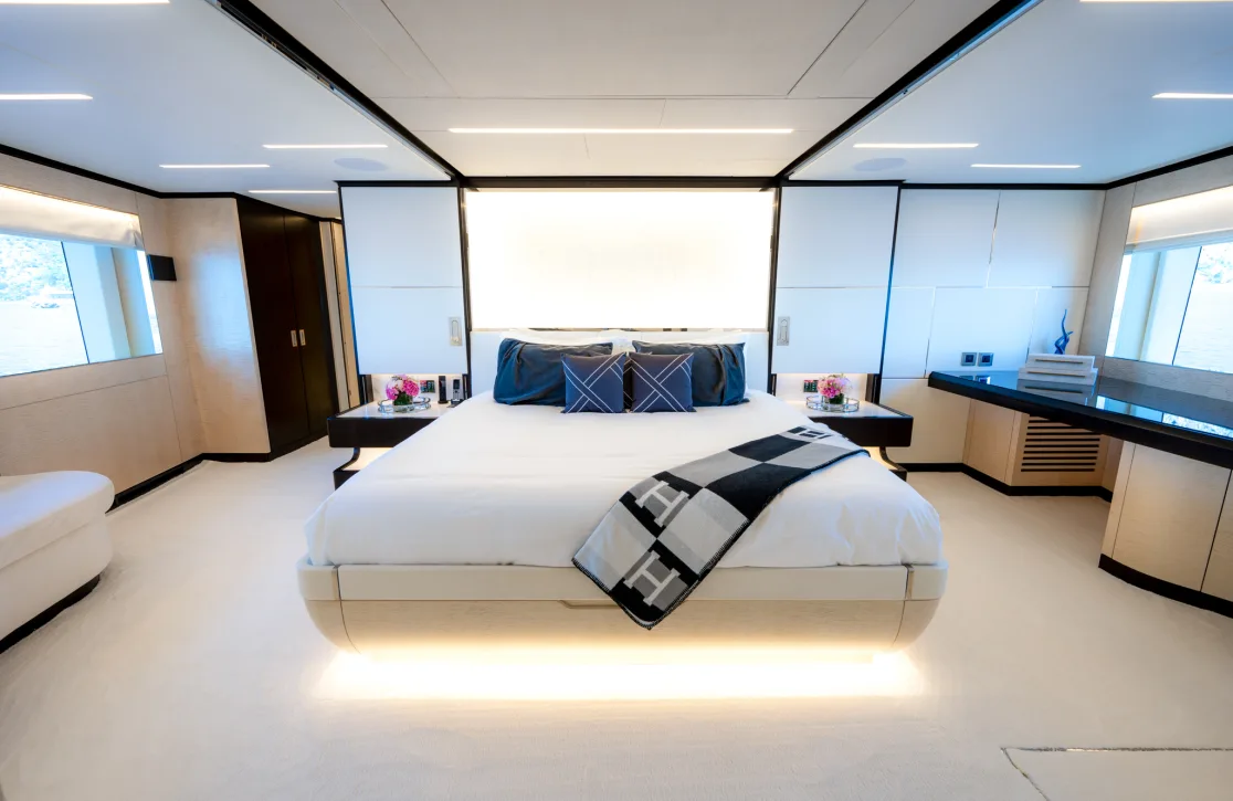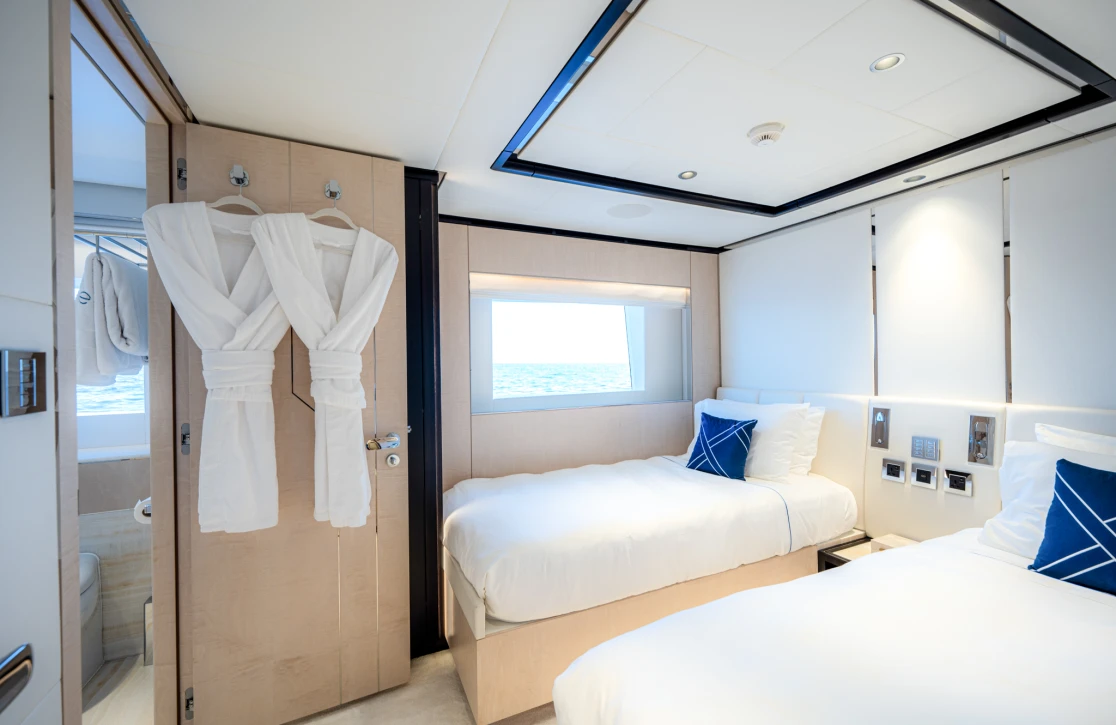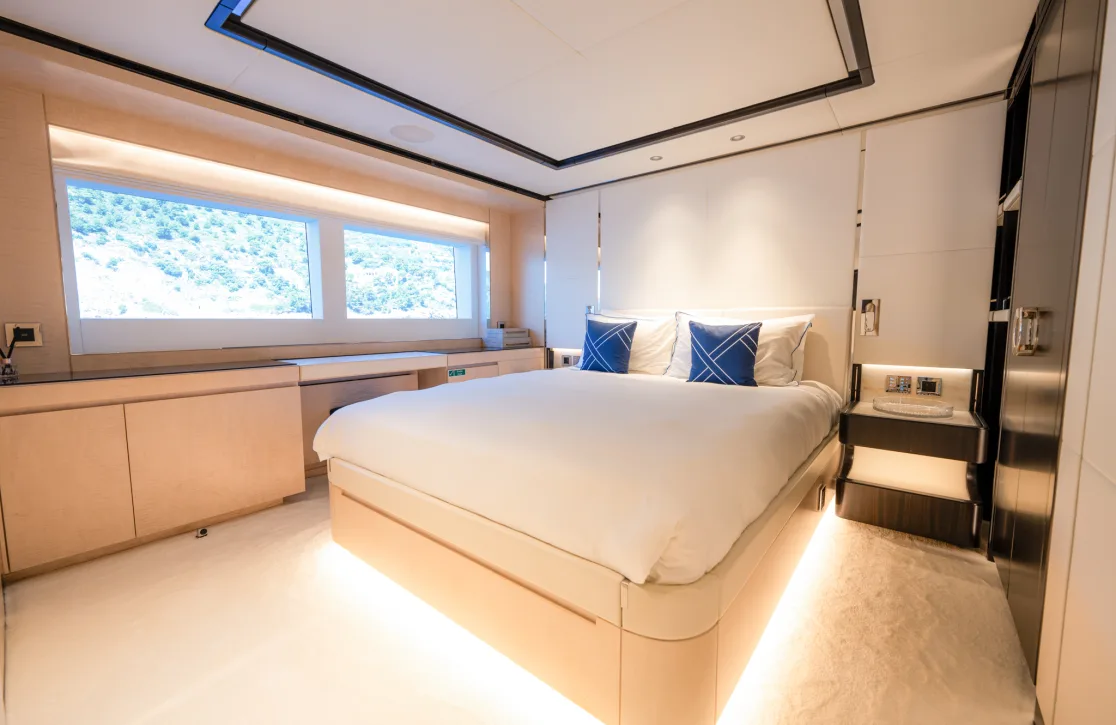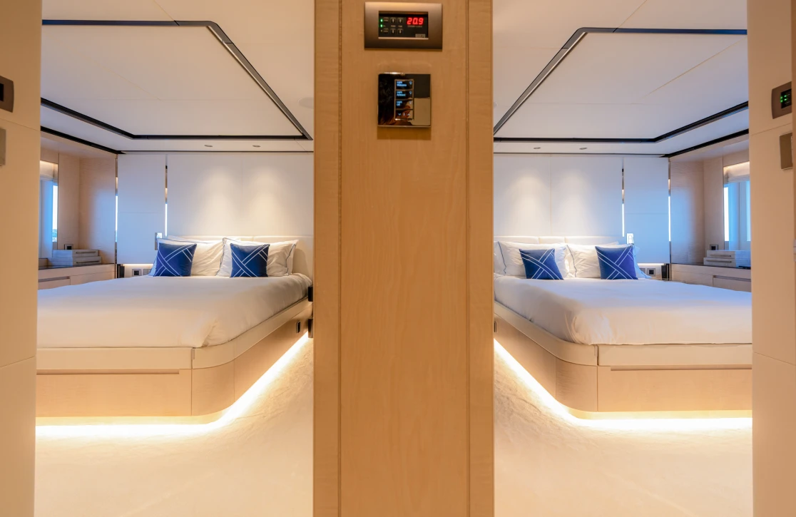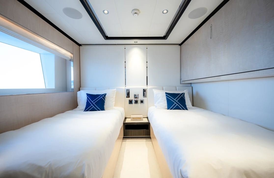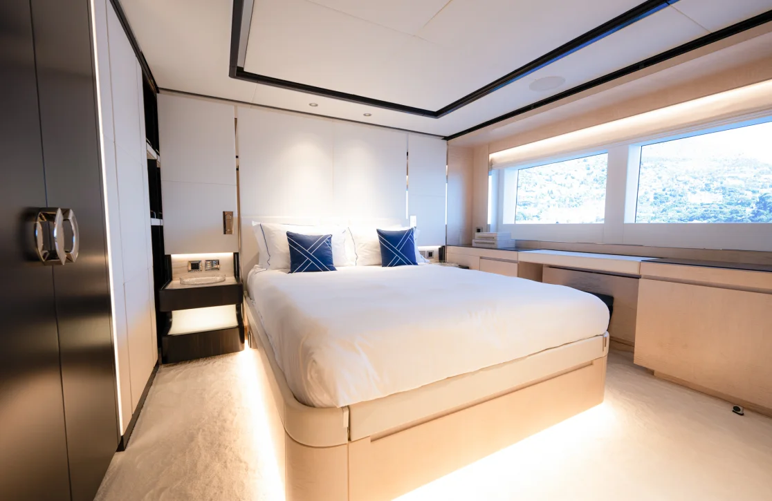 Rocket ONE accommodates up to 12 guests in six exquisitely appointed cabins, each a haven of tranquility. The master suite stands out as a private sanctuary with its own study and dressing room, while the two VIP cabins and two twin cabins provide equally luxurious retreats. As you awaken to the gentle sway of the ocean, the attentive service of a dedicated crew ensures that every need is anticipated, making your stay onboard as restful as it is invigorating.