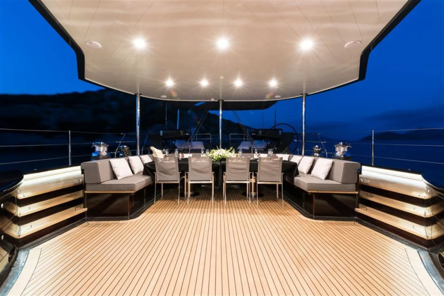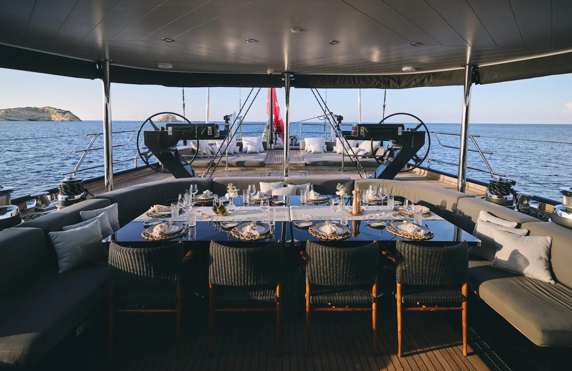 Rox Star graciously hosts up to 11 guests within her five exquisitely appointed cabins. The master suite, with its sumptuous king bed, offers a sanctuary of rest, while the additional double cabins, each with queen beds, promise serene retreats after a day of exploration. The design ensures that every guest, whether in the master suite or the cozy pullman, awakens to the gentle lapping of waves and the promise of another extraordinary day at sea.