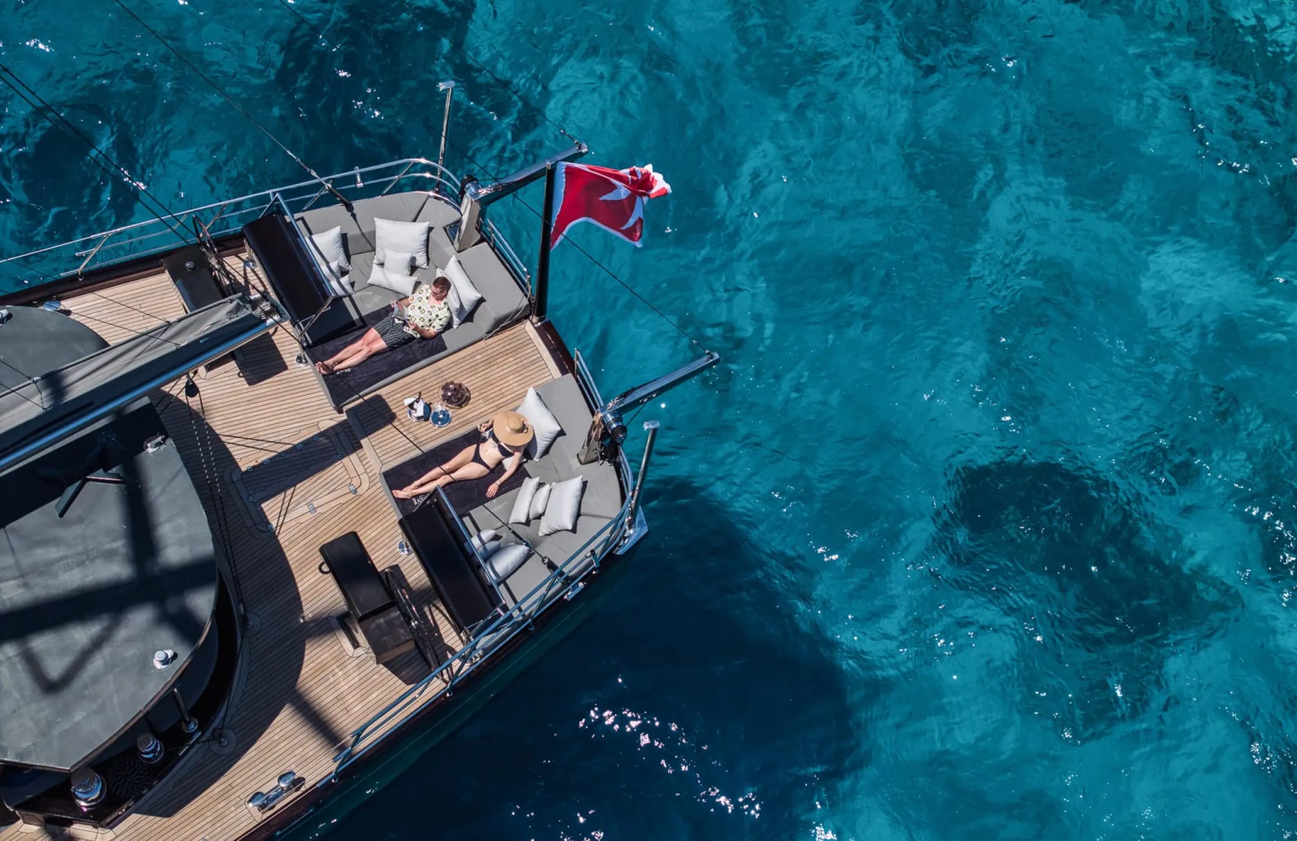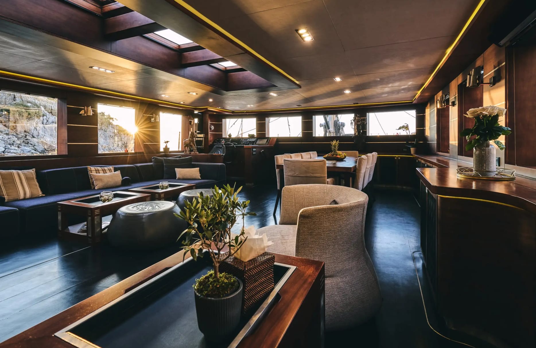 Aboard Rox Star, guests find themselves enveloped in a haven of comfort and tranquility. The yacht’s climate-controlled interiors provide a respite from the sun, while Wi-Fi connectivity ensures you remain in touch with the world, if you so choose. As the sun sets, gather in the salon, where the ambiance is set for intimate conversations or lively entertainment, all while the gentle sway of the yacht adds a rhythm to your evening.