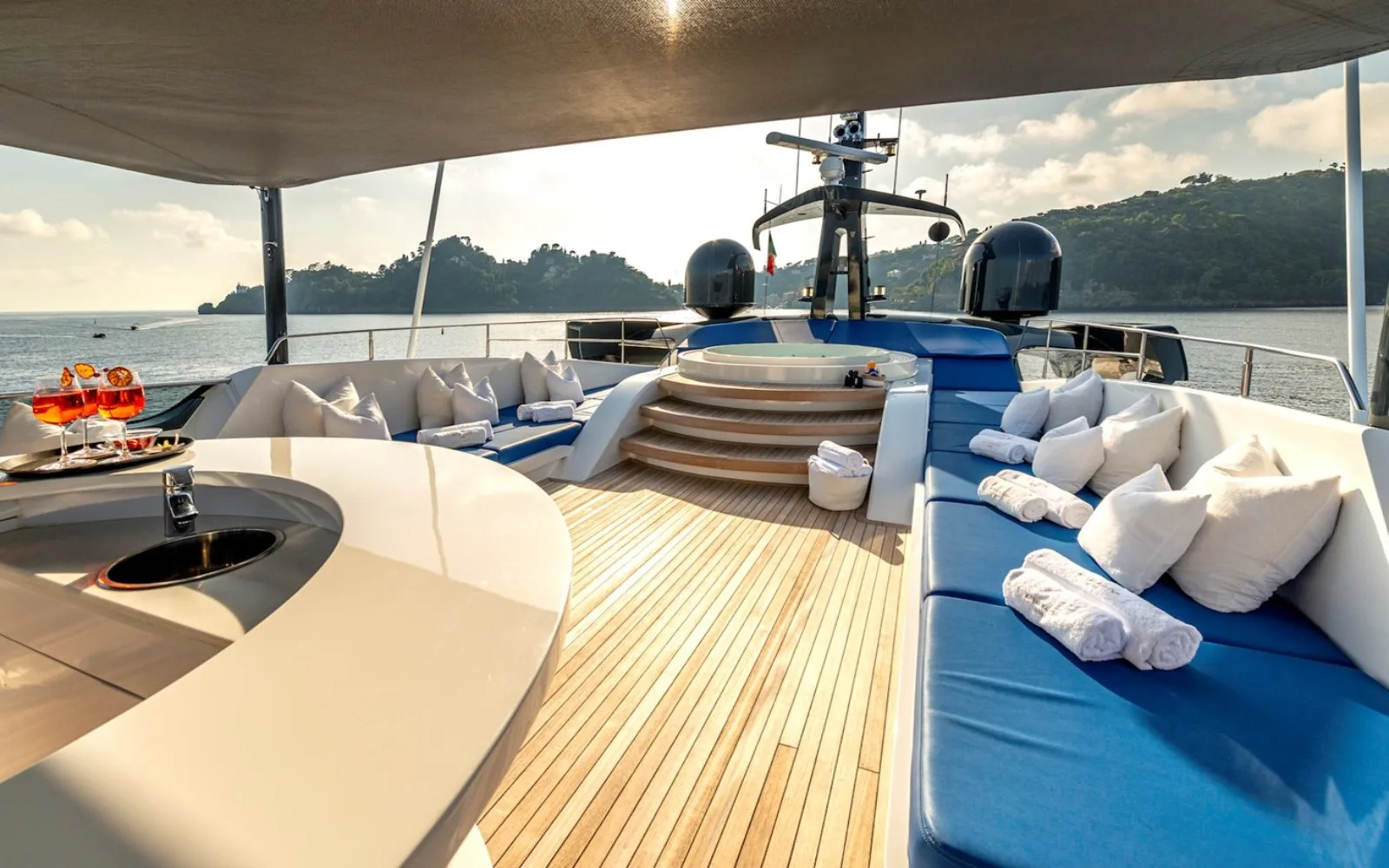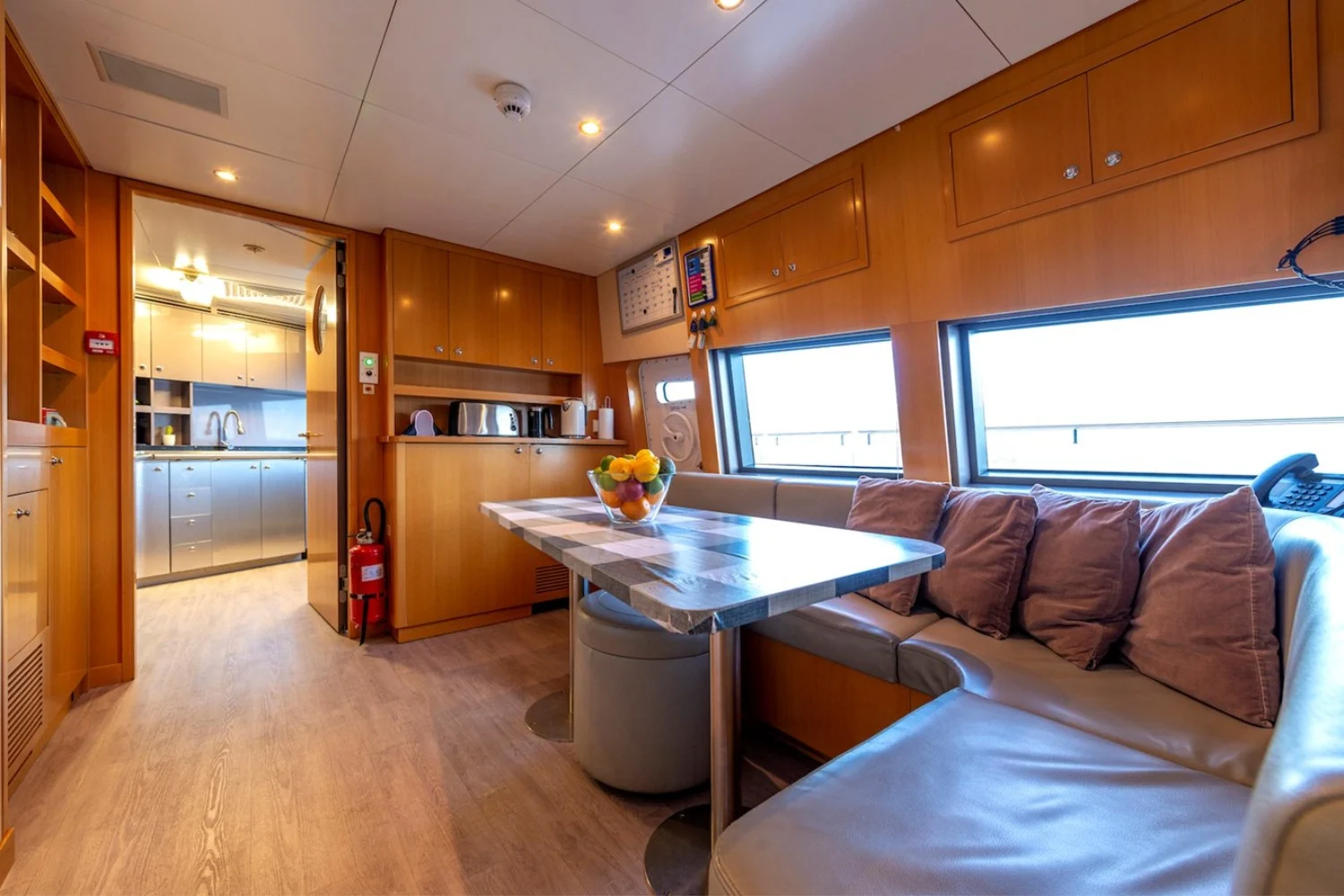 Onboard the Royal Falcon One, every moment is an invitation to indulge. Picture yourself reclining on the expansive sun deck, a gentle breeze in your hair and the horizon stretching infinitely before you. The deck jacuzzi offers a sanctuary of bubbling bliss, the perfect spot to unwind as the sun sets on another day of discovery. Inside, the climate-controlled interiors provide a cool retreat, where seamless Wi-Fi connectivity ensures you stay connected to the world, even as you escape it. Whether it’s a quiet evening under the stars or a lively gathering with friends, the yacht’s spaces are designed to cater to your every whim.
