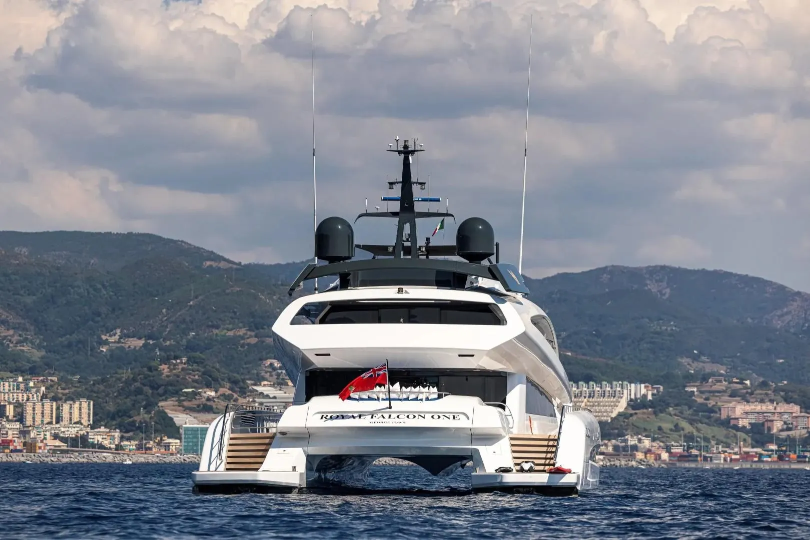 Step aboard the Royal Falcon One, a masterpiece of nautical design and engineering, where the sea becomes your private realm for a week of boundless exploration. This 41-meter catamaran, crafted with precision by the illustrious Kockums shipyard, offers an experience that seamlessly blends the thrill of adventure with the serenity of the open sea. The sleek lines of her Porsche-designed interiors invite you to indulge...
