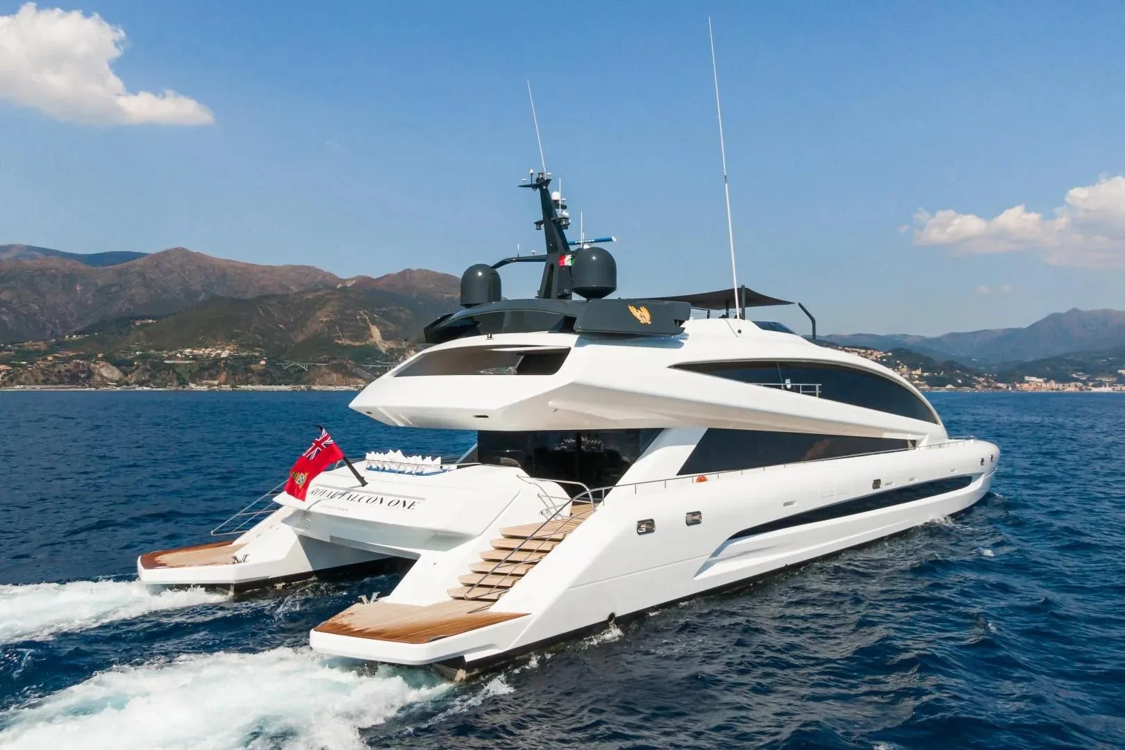 Step aboard the Royal Falcon One, a masterpiece of nautical design and engineering, where the sea becomes your private realm for a week of boundless exploration. This 41-meter catamaran, crafted with precision by the illustrious Kockums shipyard, offers an experience that seamlessly blends the thrill of adventure with the serenity of the open sea. The sleek lines of her Porsche-designed interiors invite you to indulge in a world where every detail is curated for your pleasure. As you glide effortlessly over the waves at speeds reaching 35 knots, the Mediterranean reveals its hidden gems, from secluded coves to vibrant harbors, all within your reach thanks to her impressive 1,200-mile range.