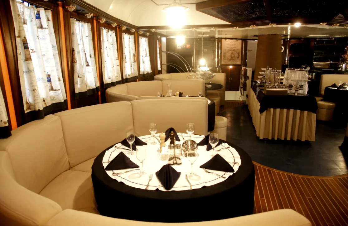 The accommodations aboard ‘Running On Waves’ are thoughtfully designed to provide an inviting retreat for its 42 guests. With 18 spacious cabins, including nine double and nine twin configurations, each room offers a sanctuary of relaxation. Imagine waking up to the gentle sway of the sea, enveloped in plush bedding and surrounded by elegant décor that whispers tranquility. The attentive crew of 21 ensures every detail is attended to, making your stay as seamless as it is memorable.