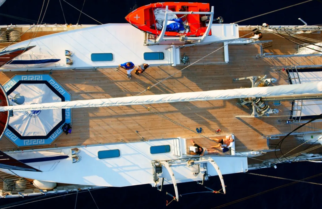 Embark on an enchanting journey aboard ‘Running On Waves,’ a 64-meter masterpiece crafted by Segel Masten Yachten. This sail yacht, designed to host up to 42 guests in unparalleled comfort, seamlessly blends the thrill of open-sea sailing with sophisticated living. As you glide across the azure waters, every moment aboard this magnificent vessel becomes an opportunity to explore both the vast ocean and hidden coastal treasures, offering an experience that is as adventurous as it is refined. With a cruising speed of 8 knots and at-anchor stabilizers ensuring smooth sailing, ‘Running On Waves’ invites you to embrace a week of serene exploration and discovery.