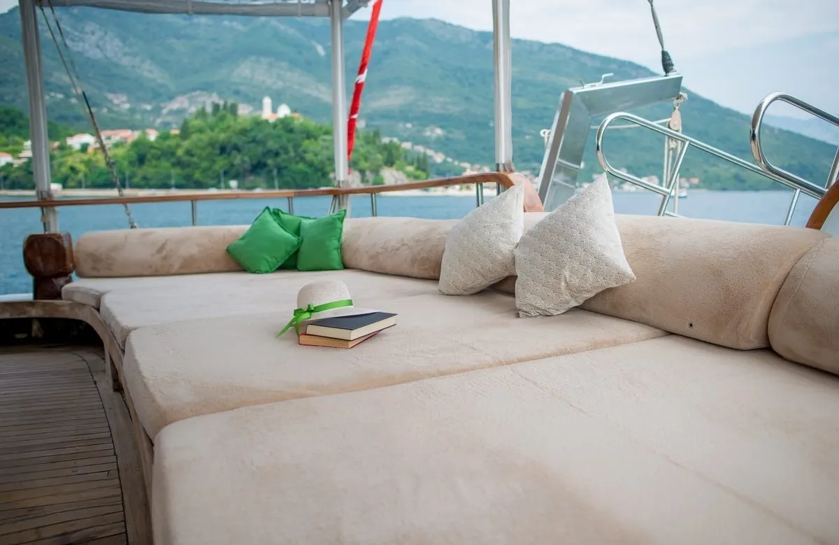 Step into a world of comfort and connectivity aboard Sadri Usta 1. The yacht’s interiors are a haven of relaxation, featuring thoughtfully designed air-conditioned spaces that provide a cool retreat from the midday sun. Stay effortlessly connected with Wi-Fi as you lounge on deck, sipping a refreshing drink while the sea breeze whispers through the sails. Whether you’re enjoying a leisurely breakfast or an evening gathering, the ambiance aboard invites guests to unwind and indulge in the serene rhythm of life at sea.