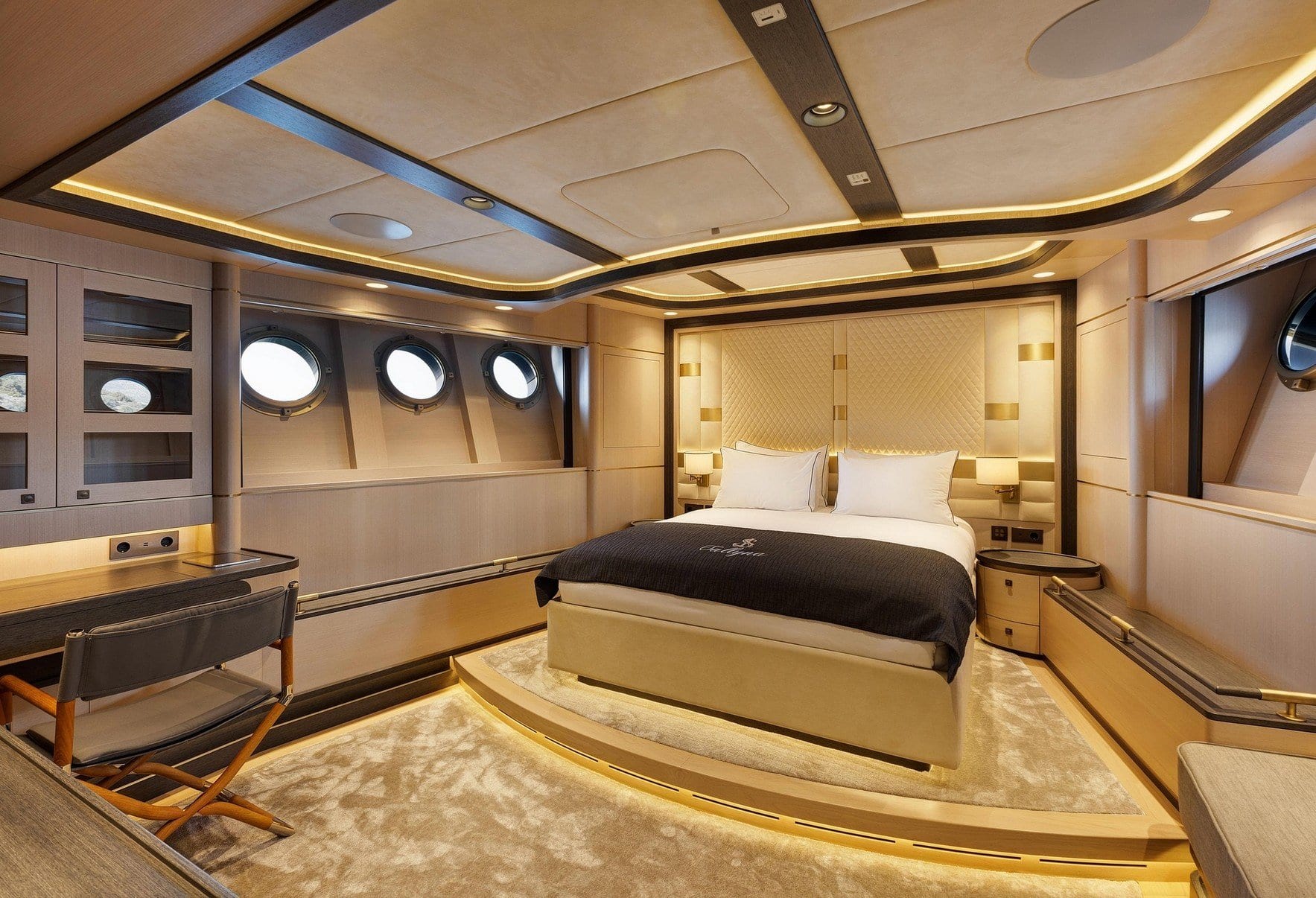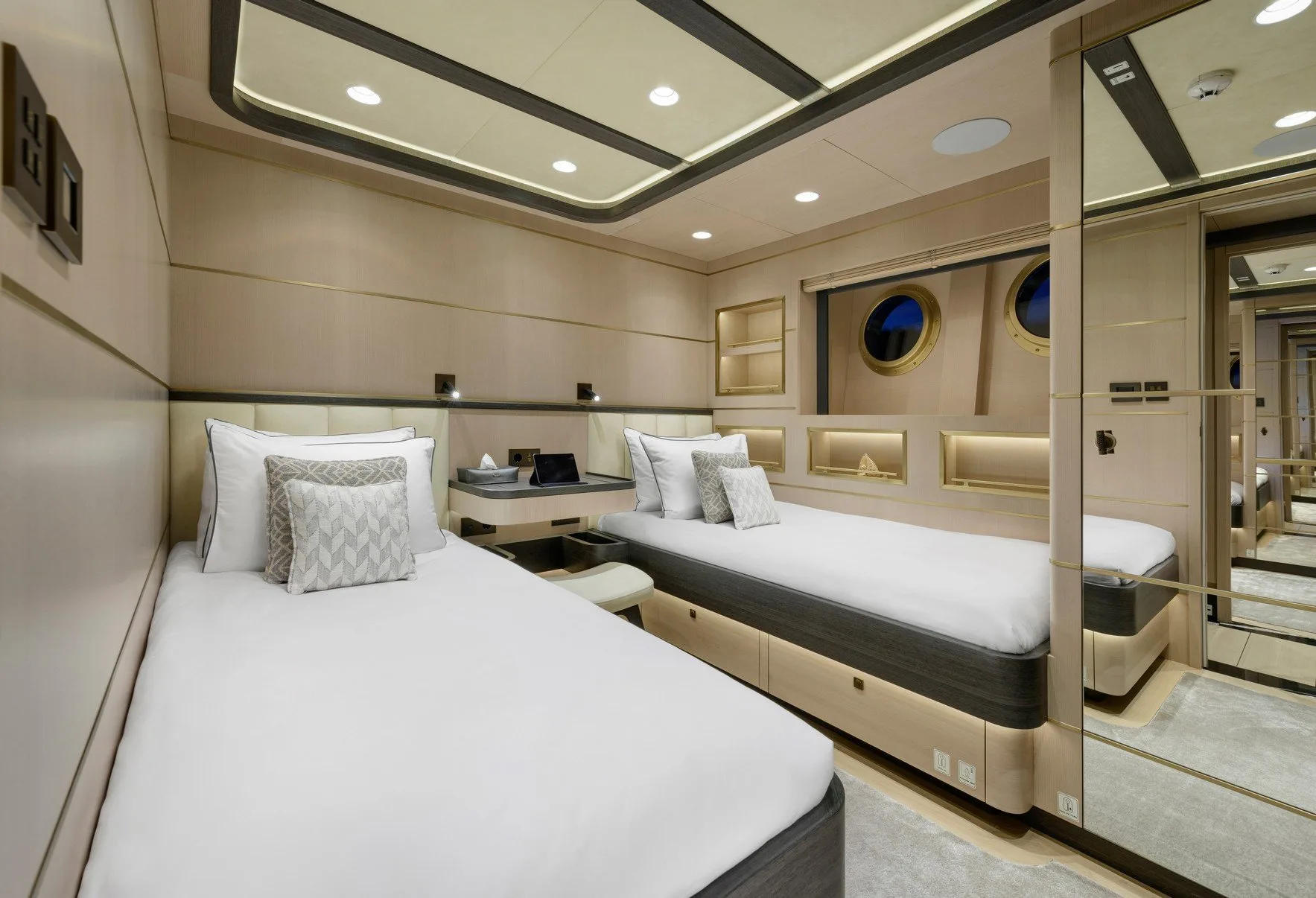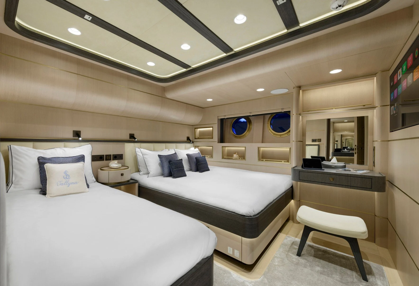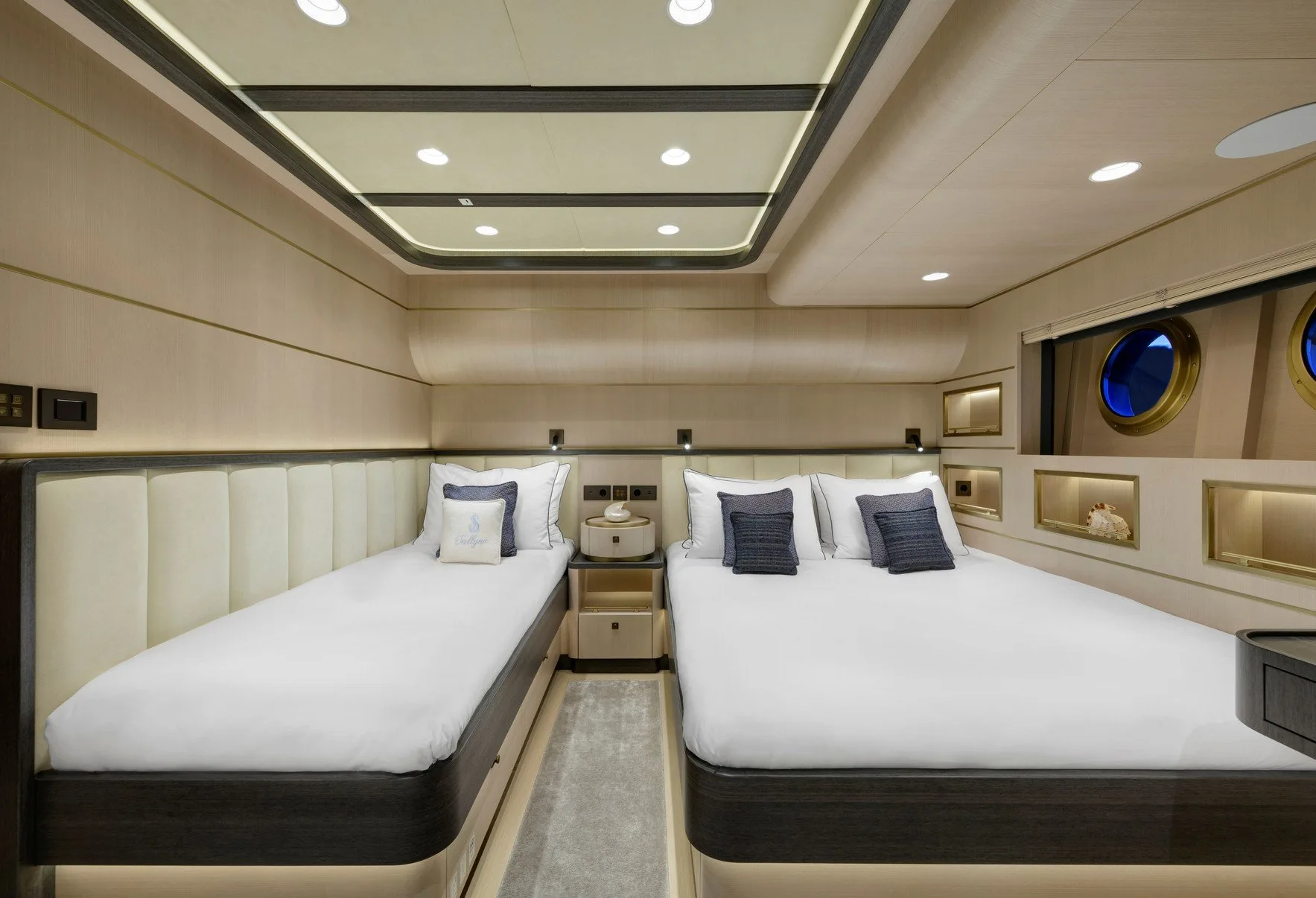 Sallyna offers accommodations for up to 12 guests across five beautifully appointed cabins, each a haven of tranquility. The master suite provides a sumptuous retreat, while two VIP cabins and versatile twin-to-double cabins cater to every preference. As morning light filters through your window, awaken to the gentle sound of the sea, embraced by the thoughtful design that envelops you in comfort. Each space is a testament to refined elegance, ensuring that your nights are as restful as your days are memorable.