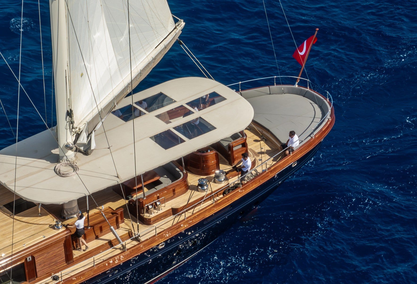 Embark on an unparalleled journey aboard the 48-meter gulet ‘Sallyna,’ a vessel that effortlessly marries classic design with modern sophistication. Crafted by Su Marine Yachts and designed by Stephen Huish, this 2023 masterpiece invites you to explore the world’s most serene waters with both grace and style. As you sail at a leisurely 10 knots, the gentle sway of Sallyna sets the rhythm for a week of pure relaxation and discovery, both on deck and ashore. The yacht’s exquisite design promises a sublime atmosphere where you can indulge in the art of unwinding, as her dedicated crew of eight ensures your every need is met with finesse. Sallyna’s expansive decks and plush interiors beckon you to savor each moment, whether basking in the sun or delighting in the culinary wonders crafted under the stars.