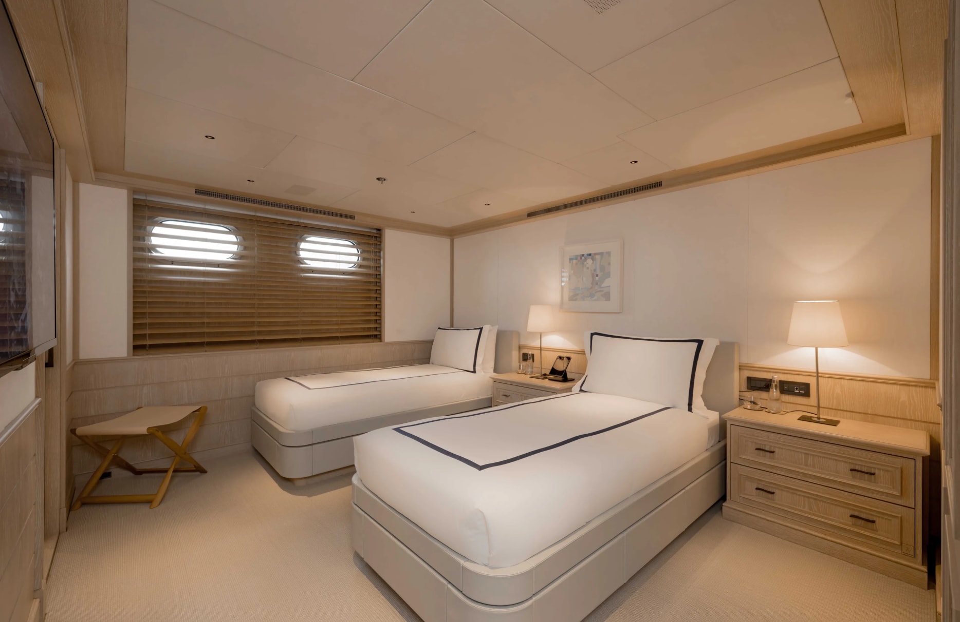 Samadhi graciously accommodates up to 12 guests within her five opulent cabins. Each morning, awaken in the serene master suite and savor the gentle sway of the ocean from the comfort of your king-sized bed. The yacht boasts four additional VIP cabins, each a private retreat with luxurious appointments, offering an ideal sanctuary for rest and rejuvenation. With the attentive crew ensuring every need is met, your stay is an invitation to pure relaxation.