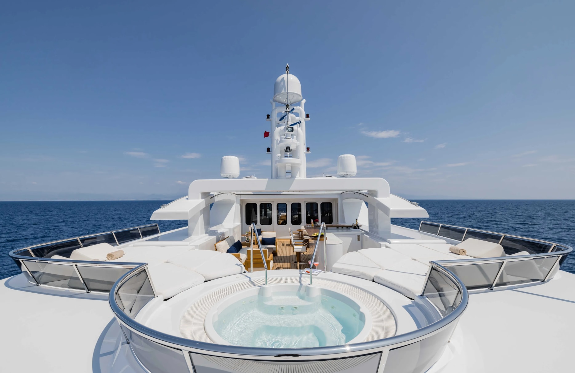 Aboard Samadhi, every detail is designed for indulgence. Picture yourself soaking in the deck jacuzzi, the perfect spot to watch the sunset paint the sky in hues of gold and pink. The spa offers a haven of tranquility, complemented by a state-of-the-art gym for those seeking to maintain their routine. Social spaces abound, from the inviting exterior bar to the sun-drenched decks, where conversations flow as freely as the sea breeze. Modern conveniences like Wi-Fi and air conditioning ensure that every moment aboard is as comfortable as it is memorable.