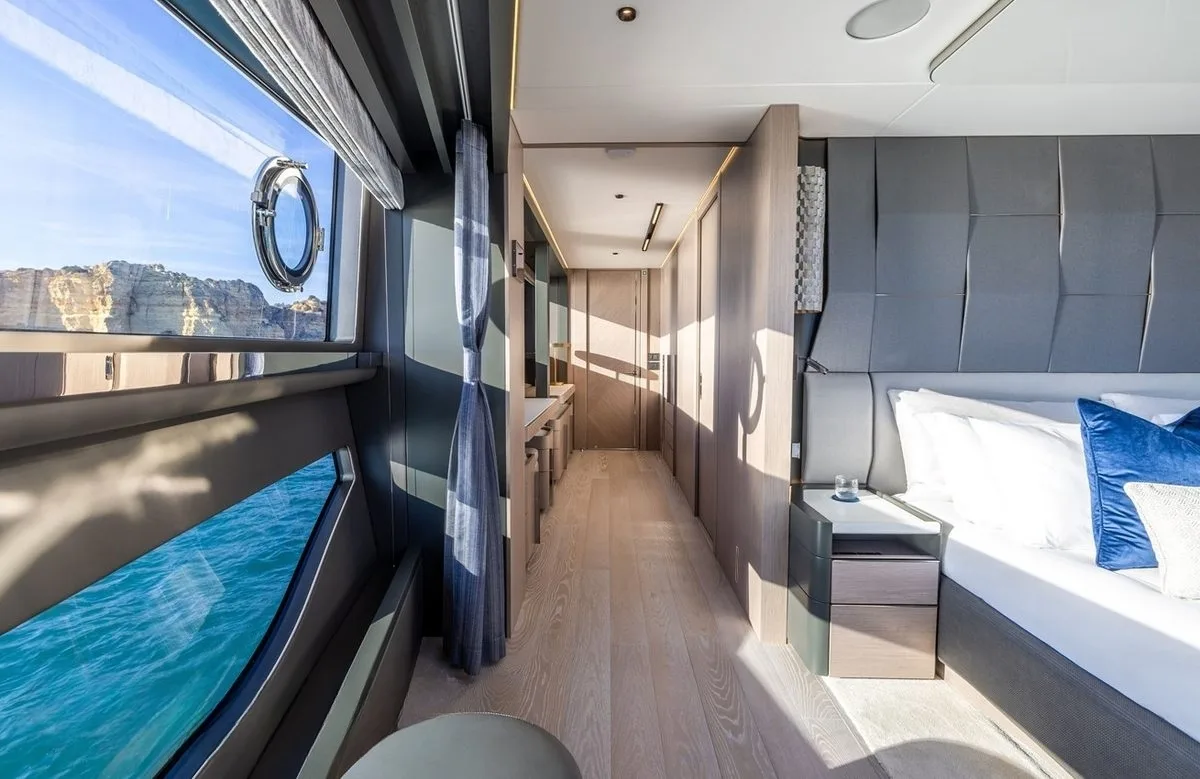 Scorpion is a haven for up to 12 guests, with five beautifully appointed cabins that provide a sanctuary of comfort and style. The master suite offers a tranquil retreat, while two VIP cabins and versatile twin or double cabins cater perfectly to families and friends. With a total of nine beds, including a king, queens, singles, and pullmans, every night promises restful slumber as the gentle motion of the sea rocks you into dreams. The thoughtful layout and elegant design of each cabin ensure an inviting and restful atmosphere.