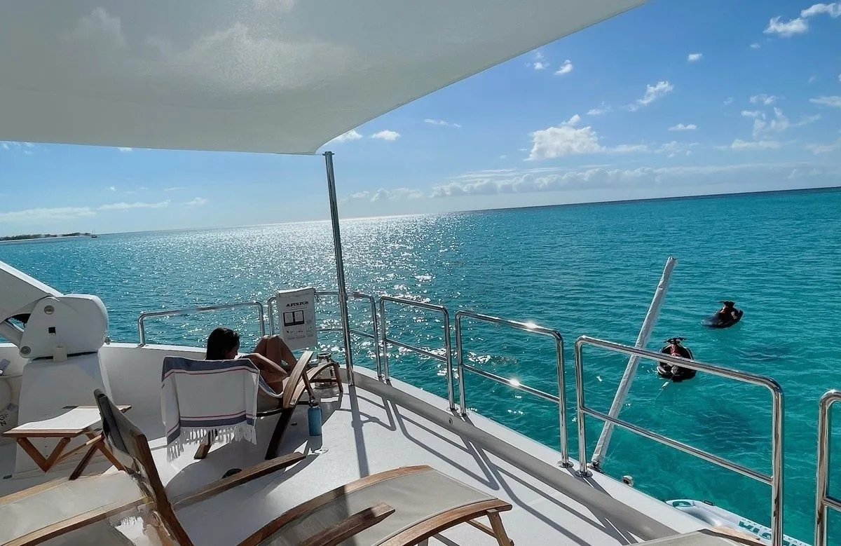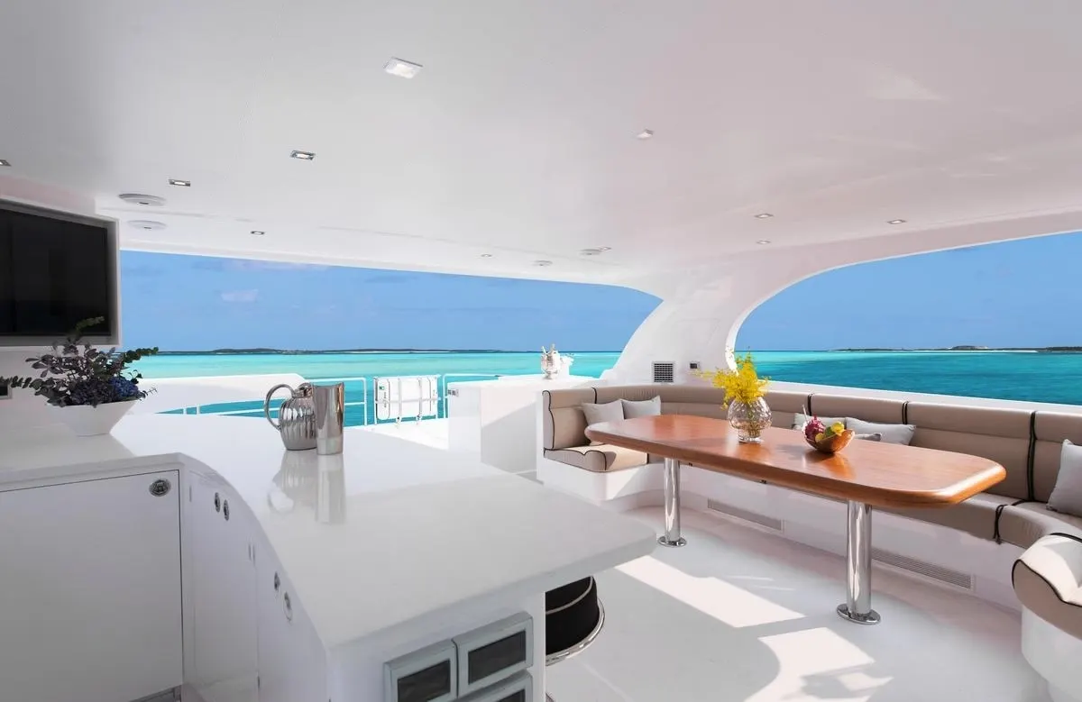 Aboard SeaGlass, the experience is as much about the ambiance as it is about the destination. Picture yourself reclining on sumptuous sunpads, enveloped by the soothing Caribbean breeze, while the onboard BBQ sizzles with the day’s fresh catch. The inviting main lounge, with its plush seating and long dining table, is perfect for intimate gatherings or serene solitude. Stay connected and entertained with satellite TV and Wi-Fi, ensuring that every moment is tailored to your desires. For those seeking tranquility, the gentle lull of the ocean complements the yacht’s air-conditioned interiors, offering a sanctuary of comfort and style.