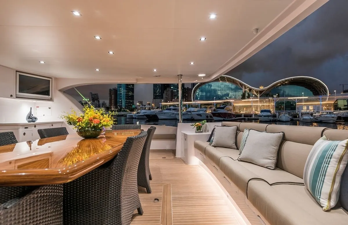 Imagine a week where every morning begins with the gentle sway of the Caribbean Sea and each day unfolds into a tapestry of exploration and relaxation. SeaGlass, a 74-foot marvel built by the renowned Horizon shipyard and refitted in 2021, offers this and more. With her sleek design and dynamic performance, she cruises comfortably at 18 knots, reaching up to 24 knots for those who crave a hint of adrenaline. Her spacious interiors are a seamless blend of elegance and comfort, setting the stage for unforgettable journeys both onboard and ashore. With a range of 515 nautical miles, SeaGlass invites you to discover hidden coves and vibrant coastal towns, transforming every voyage into a personal odyssey.