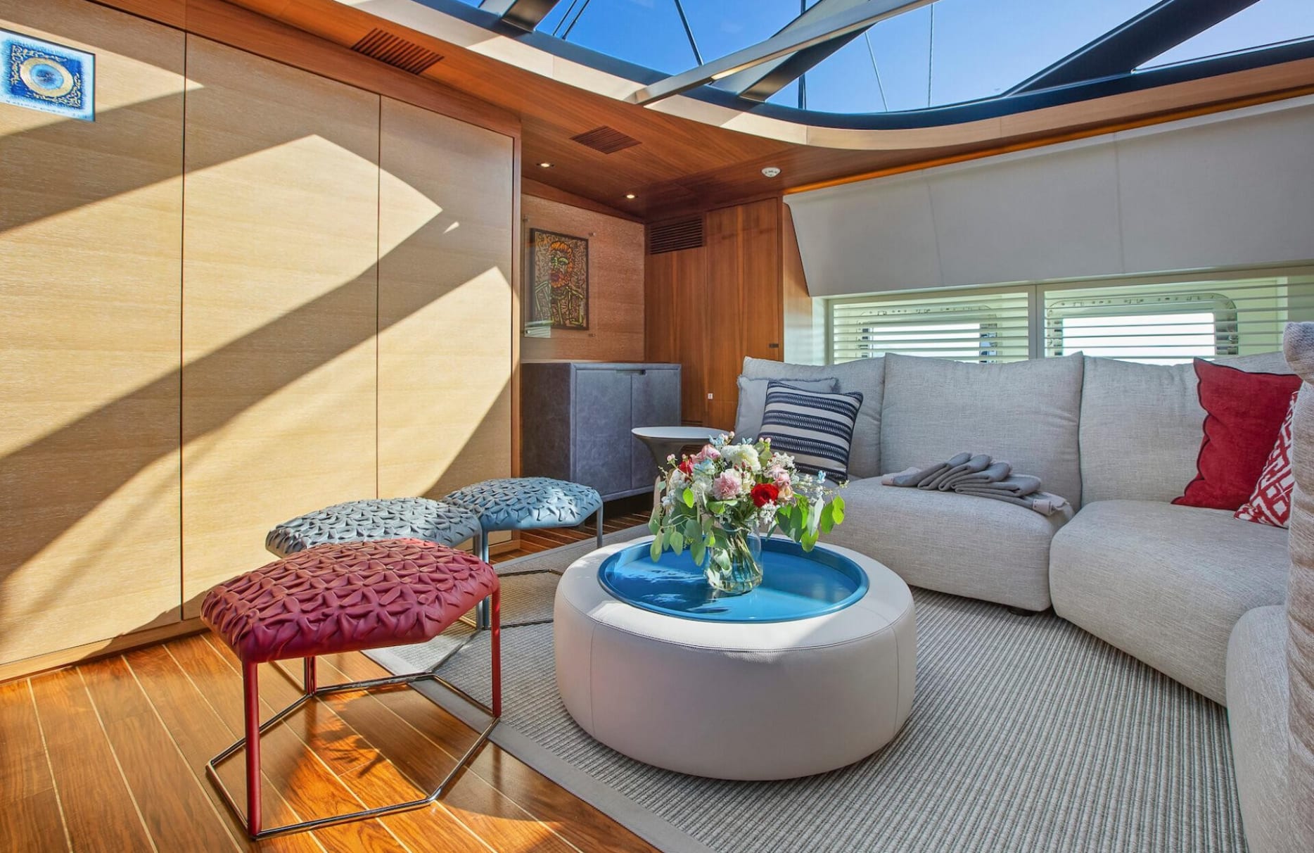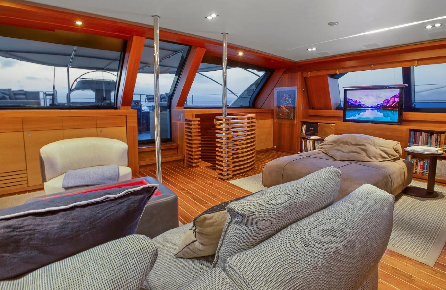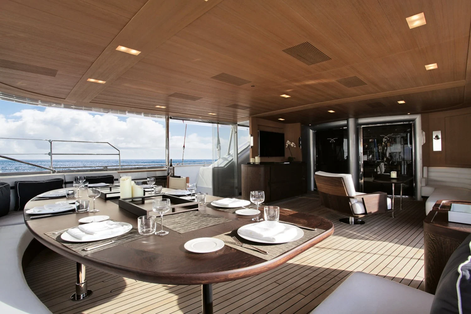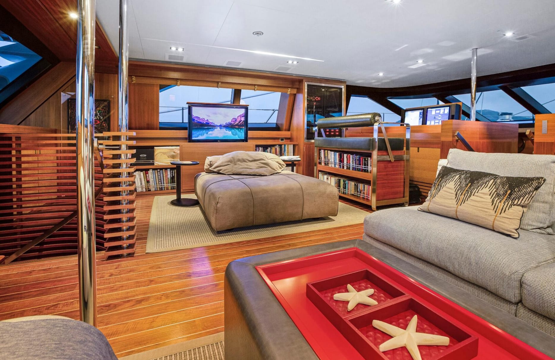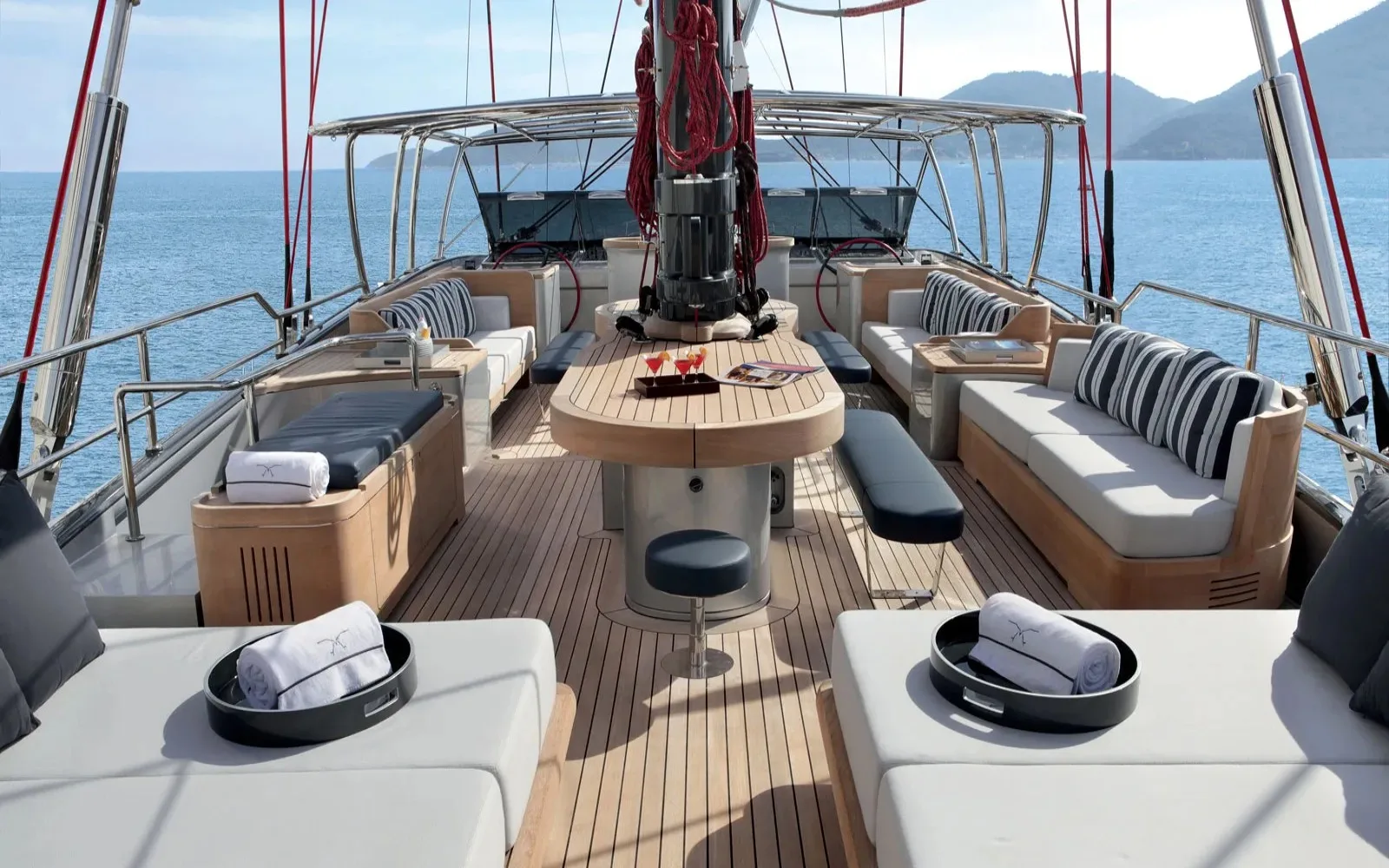 Onboard Seahawk, every amenity is thoughtfully designed to enhance your journey. Begin your day with a revitalizing workout in the modern gym, where the latest equipment awaits to keep your fitness regime uninterrupted. As the sun sets, the outdoor cinema becomes a haven for evening entertainment, where you can enjoy films under a canopy of stars. Throughout your voyage, stay connected with state-of-the-art satellite communications and Wi-Fi, or choose to disconnect and embrace the tranquility that surrounds you. The sun deck, adorned with sunpads, offers a perfect spot for basking in the sun, while the bathing platform provides easy access to the refreshing sea.