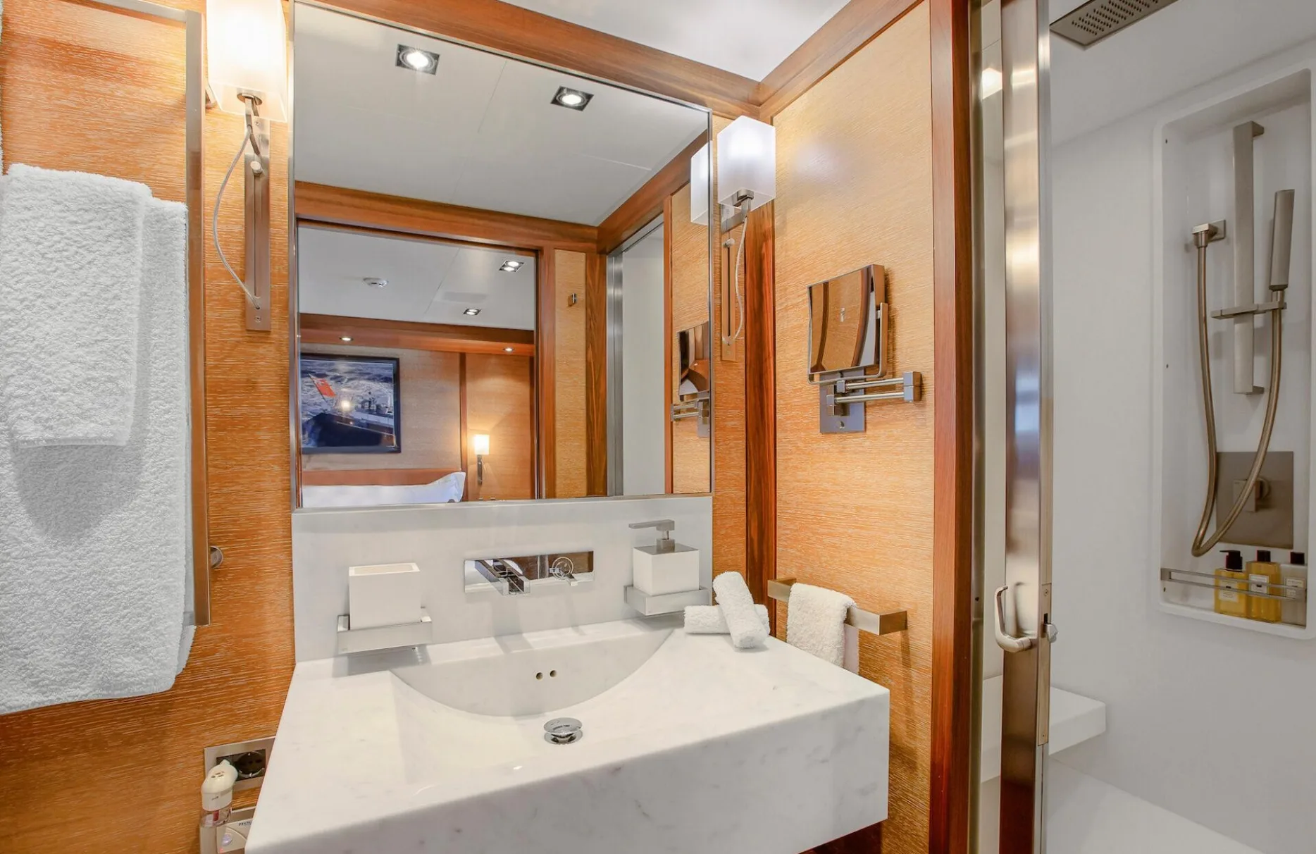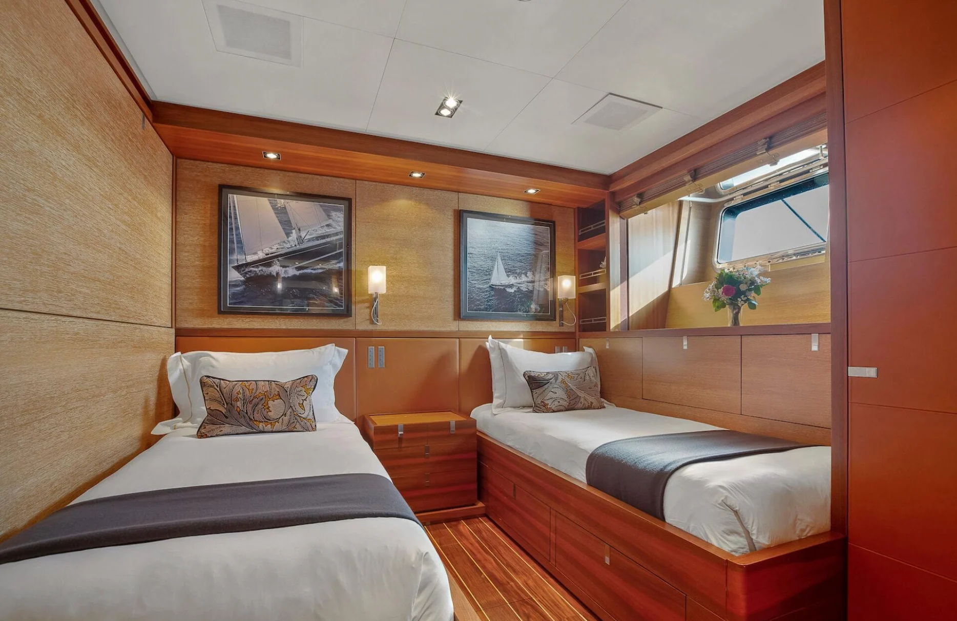Seahawk welcomes 12 guests into a realm of comfort with her five beautifully crafted cabins. Each room is a private retreat, offering a restful night’s sleep as the gentle sway of the ocean cradles you. The master suite is a haven of sophistication, while the double and twin cabins provide versatility for families or groups. Awaken each morning to panoramic views of the sea, and let the day’s adventures unfold from the comfort of these elegant spaces. The careful attention to detail in each cabin ensures that your stay is nothing short of extraordinary.