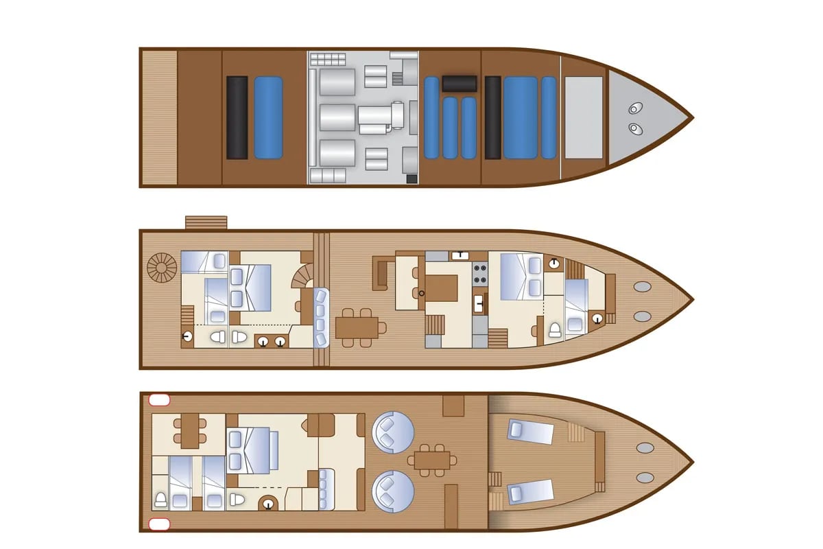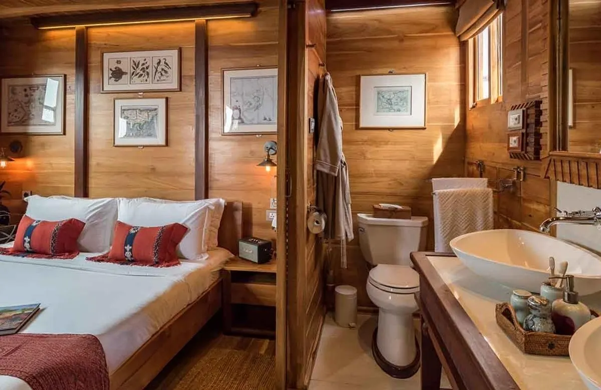 Accommodations aboard Sequoia are designed to envelop guests in an ambiance of refined comfort. With space for up to six guests across three beautifully appointed cabins, including a lavish master suite and a versatile twin cabin with convertible beds, your stay is marked by both privacy and luxury. Awaken each morning to the gentle rhythm of the sea and the promise of a new day filled with possibility. The thoughtful design ensures that every cabin is a haven of relaxation, with an understated elegance that invites tranquility.