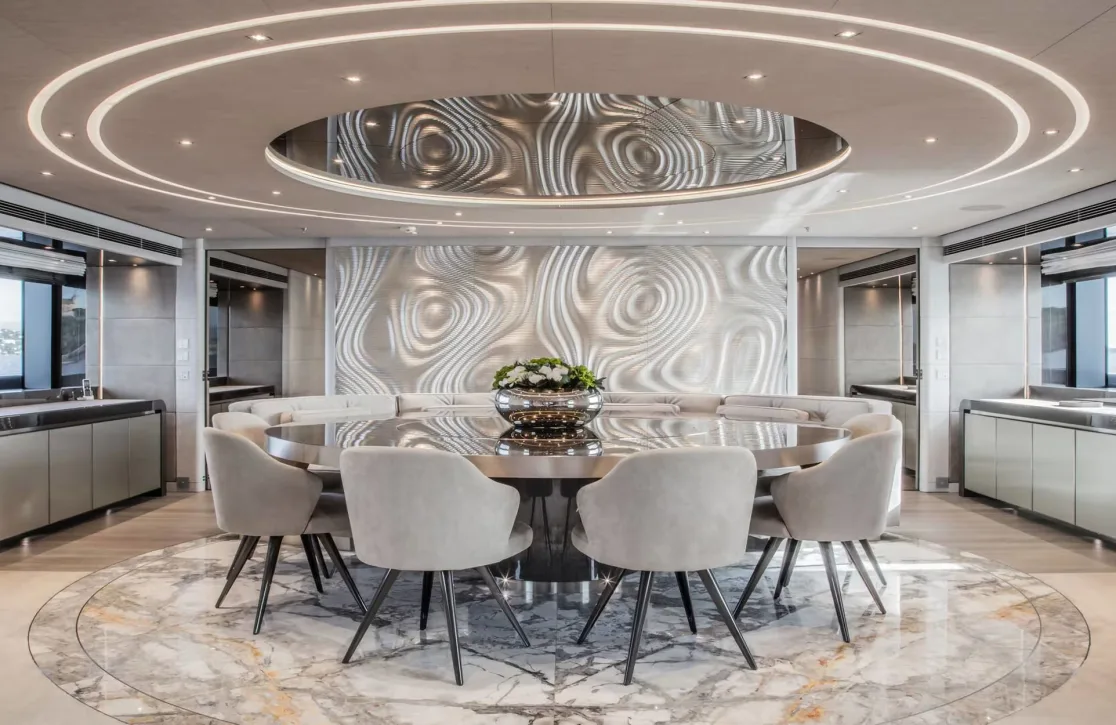 Severin’s offers exquisite accommodations for up to 12 guests, ensuring each moment spent onboard is enveloped in comfort and elegance. The master suite, located on the main deck, is a sanctuary of privacy and luxury, complete with its own study and dressing room. Two VIP cabins provide ample space and sophistication, while a versatile cabin can transform to suit your needs. Waking up to the gentle sway of the ocean and the promise of a new day at sea is an experience like no other, with every detail in these six cabins meticulously designed for your relaxation and enjoyment.