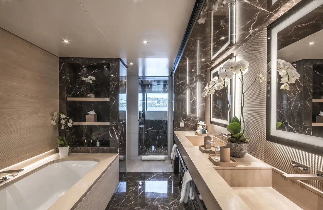 Severin’s invites you to immerse yourself in a world of refined elegance and modern comfort aboard her 55-meter frame. Created by the esteemed Baglietto shipyard and designed by Francesco Paszkowski, Severin’s is a testament to Italian craftsmanship. The vessel glides effortlessly across the water, offering a cruising speed of 14 knots and reaching up to 17 knots, promising both tranquility and adventure on your voyage. With a range of 4,500 nautical miles, she beckons you to explore distant shores and discover hidden coves, all while enjoying the serene ambiance only a yacht of this caliber can provide. Onboard Severin’s, guests are invited to experience an unparalleled blend of comfort and style. Her expansive decks offer panoramic vistas perfect for both sunlit relaxation and evening gatherings under the stars. Whether rejuvenating in the onboard spa, savoring moments in the steam room, or basking in the deck jacuzzi, life aboard Severin’s is crafted for those who seek the extraordinary. Each day offers new horizons, both on the open sea and ashore, with the promise of unforgettable memories at every turn.