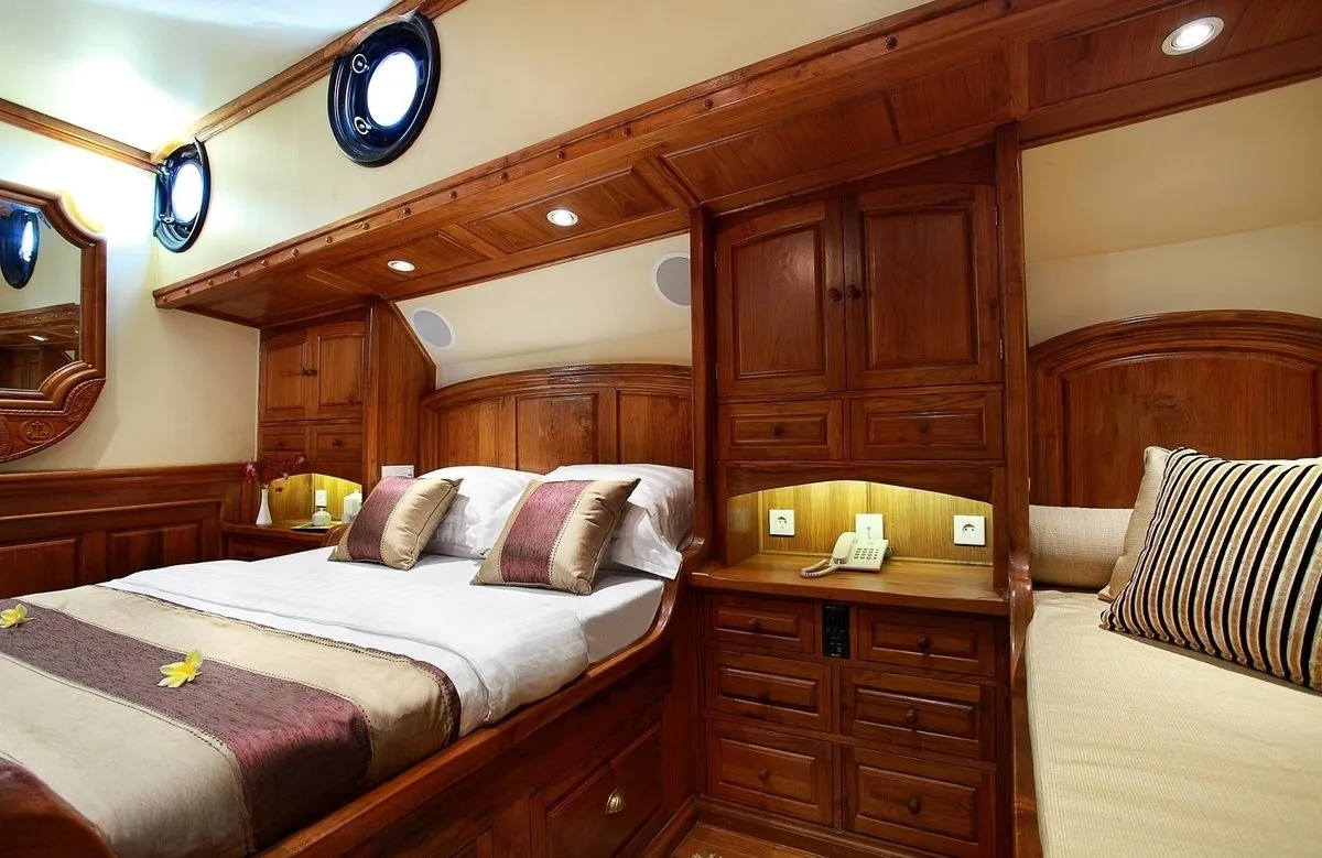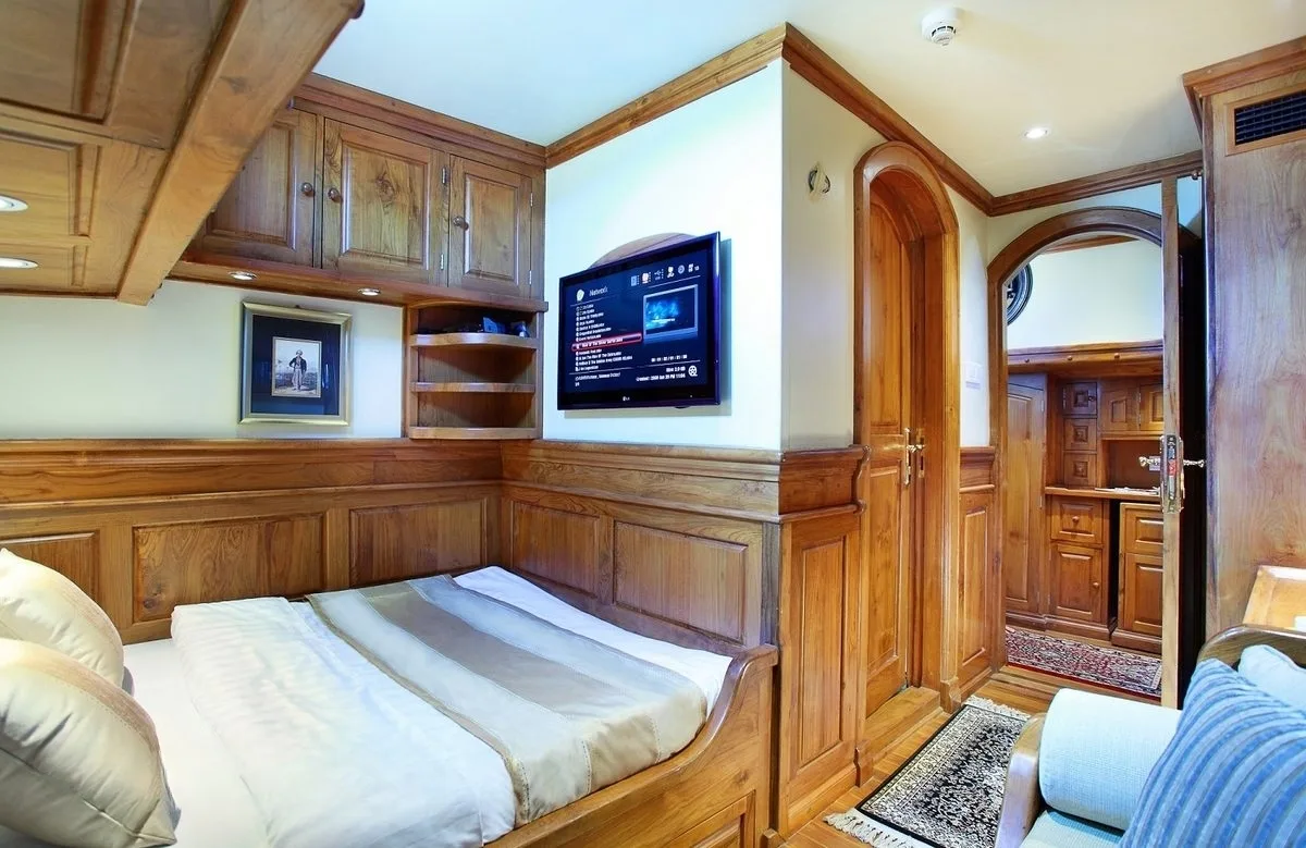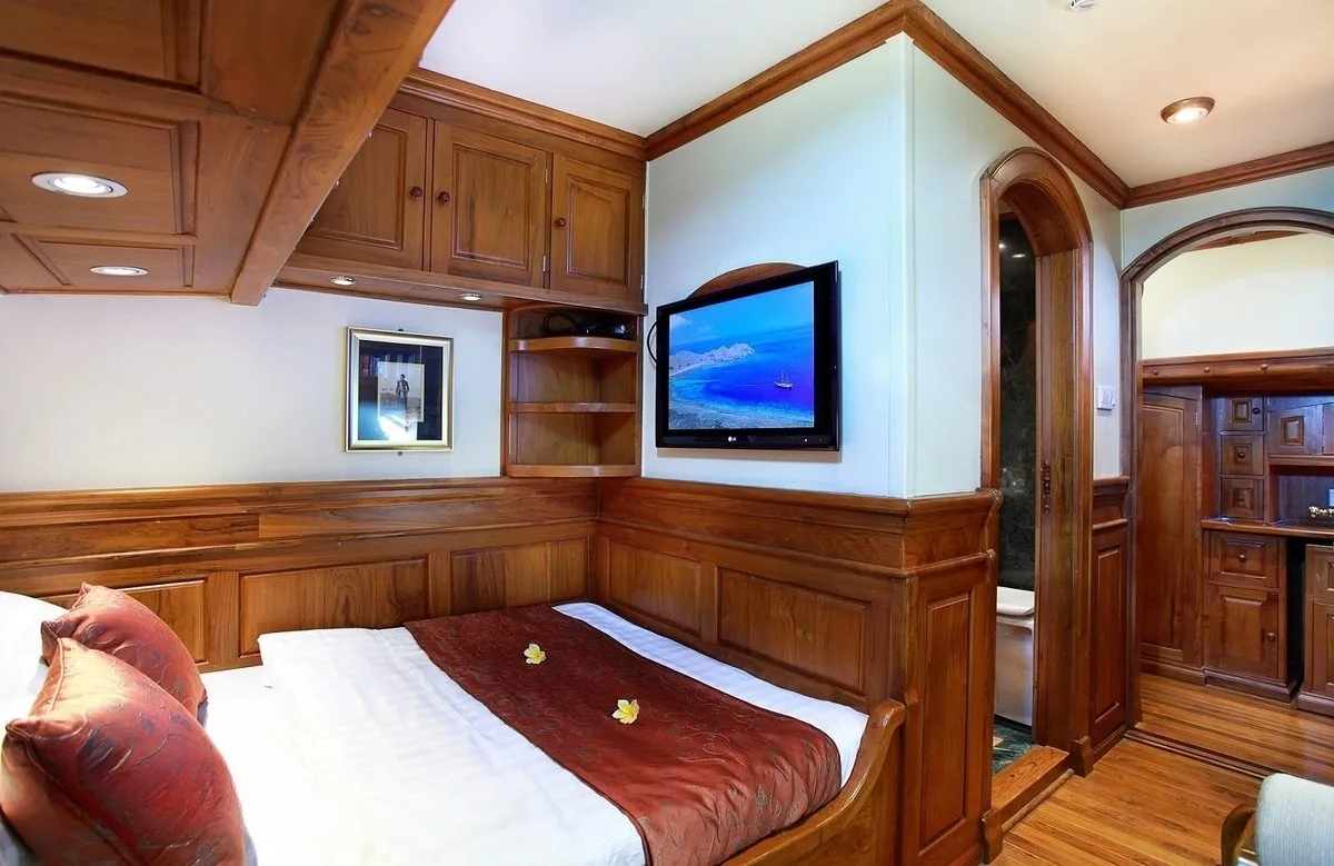 The Shenandoah of Sark graciously welcomes up to 11 guests in four exquisite cabins, including a master suite and three double cabins. Each room is a sanctuary of comfort, allowing you to wake up to breathtaking views and the gentle embrace of the sea. With an attentive crew of 11, your every need is anticipated, ensuring a restful and indulgent stay.