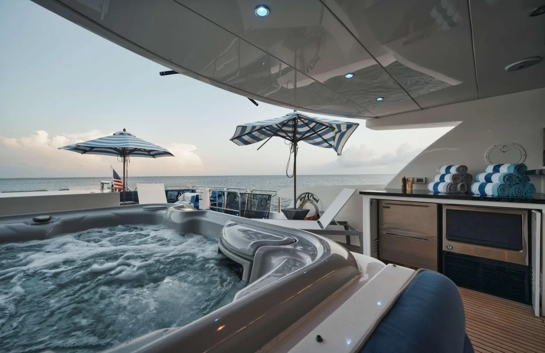 Whether sipping a perfectly chilled drink in the deck jacuzzi or experiencing the thrill of the open waters, ‘She’s A Peach’ transforms every moment into an unforgettable experience. With her fiberglass hull and GRP superstructure, she is not just a vessel but a gateway to sublime adventures and serene retreats. Let the gentle breeze and panoramic vistas be your companions as you begin a week-long escape into maritime bliss.