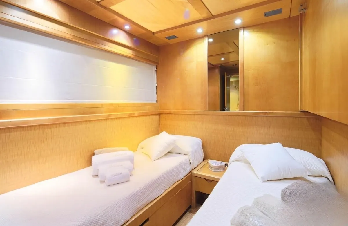 Silvia accommodates up to ten guests in superior comfort, with a full-beam primary suite, a sumptuous VIP suite, and two twin cabins that exemplify understated elegance. The versatile convertible cabin adds an element of flexibility, ensuring everyone finds their perfect sanctuary. Awaken each day to the gentle lull of the sea, with rays of dawn filtering through large windows, promising another day of boundless exploration and indulgence.