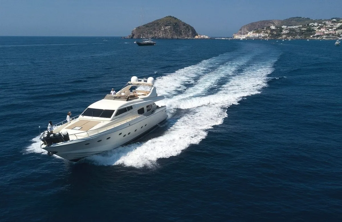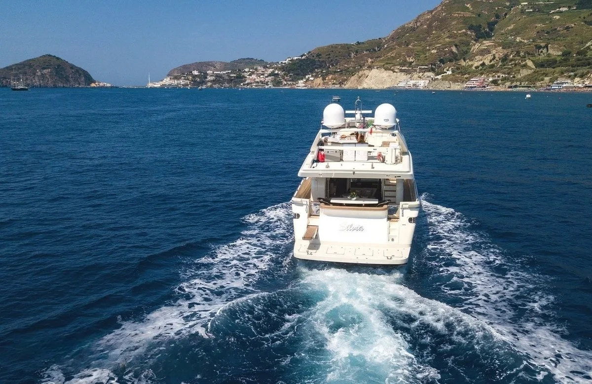 Embark on an unforgettable journey aboard Silvia, a refined 85-foot flybridge motor yacht crafted by the esteemed Posillipo shipyard. With her elegant lines and a blend of modern and classic design, Silvia invites you to explore the enchanting waters of the Mediterranean. As you glide through azure seas, Silvia’s shallow draft allows you to anchor in sequestered coves and bays, offering a unique perspective of the coastline. Whether savoring a morning espresso on the deck or basking in the golden Mediterranean sunset, each moment aboard Silvia is tailored to your desires, with every day promising novel adventures both onboard and ashore.