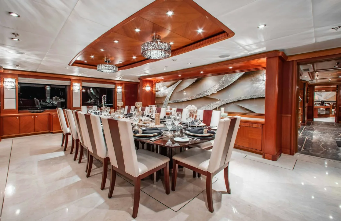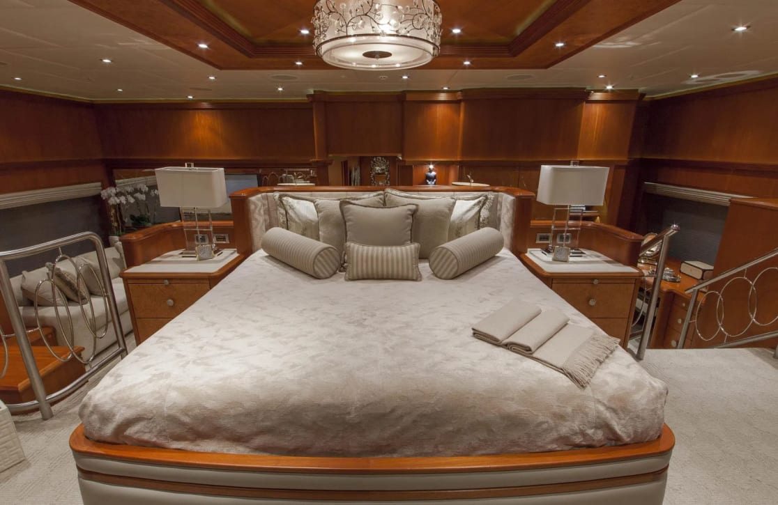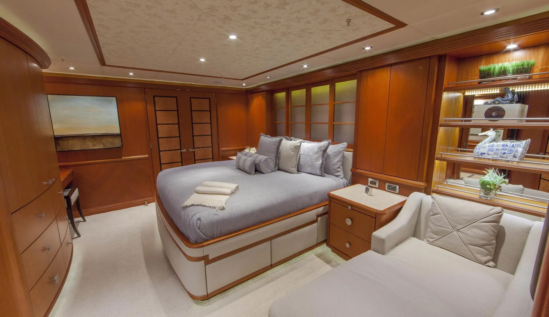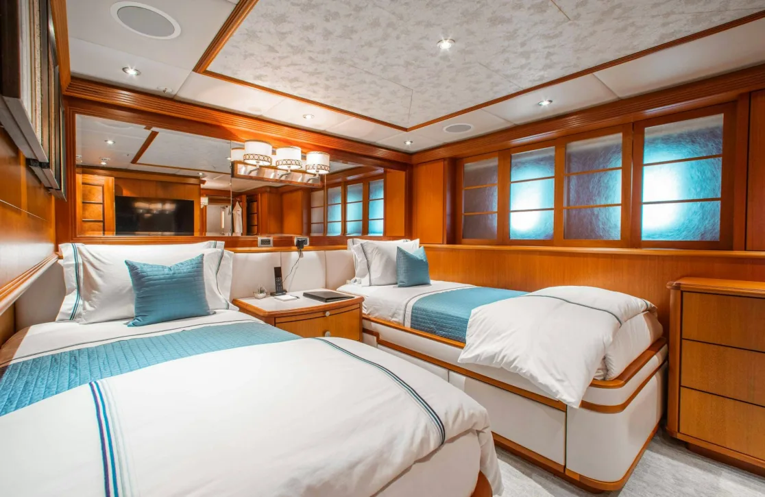 Skyfall provides a haven for up to 12 guests, with seven exquisite rooms that redefine comfort at sea. The split-level master suite is an indulgent retreat, offering panoramic views and a serene atmosphere to wake up to each morning. Additional VIP and twin cabins ensure that all guests experience the same level of care and elegance. As you settle into your private sanctuary, the gentle sway of the ocean becomes a lullaby, and the attentive crew is always on hand to cater to your every need.