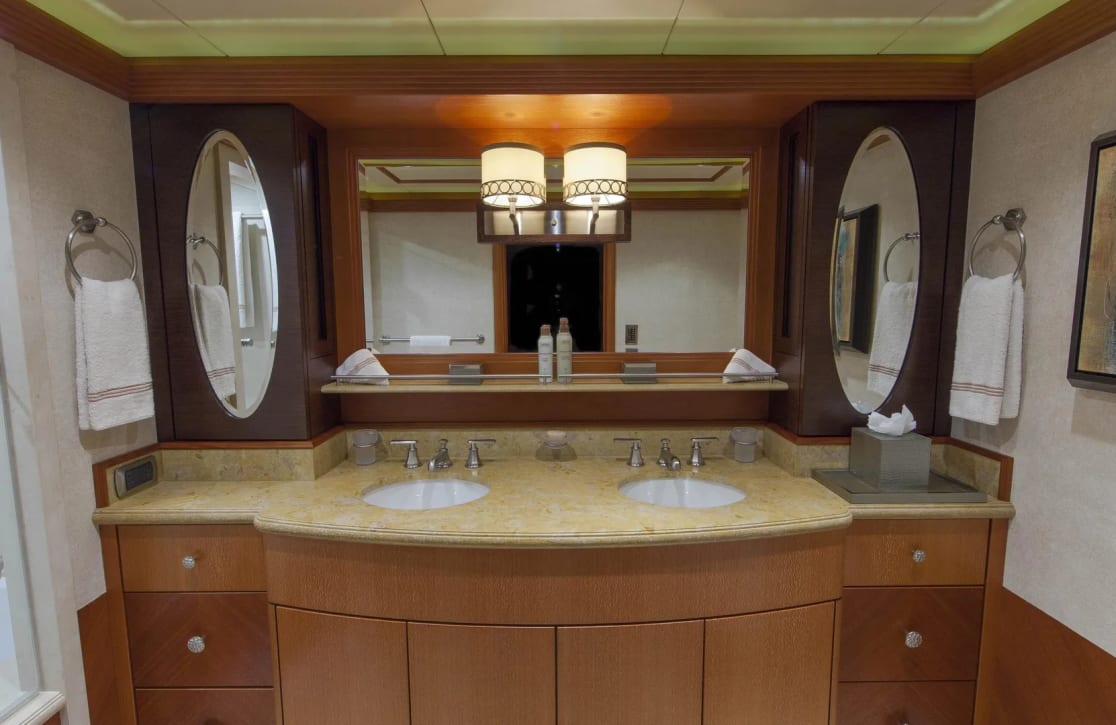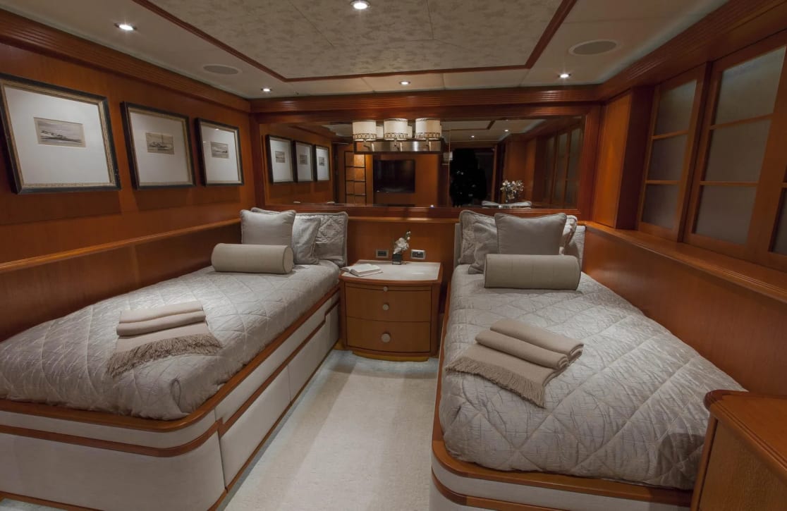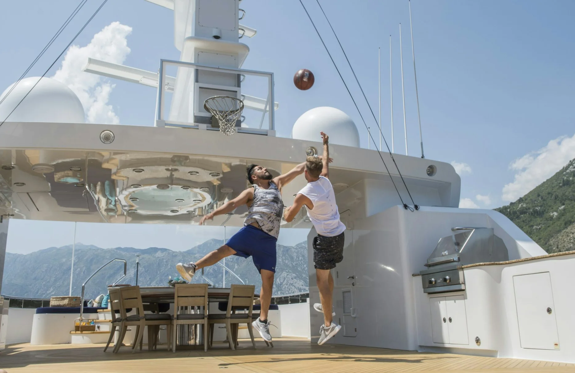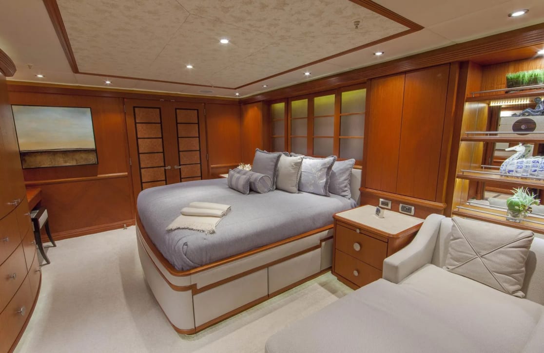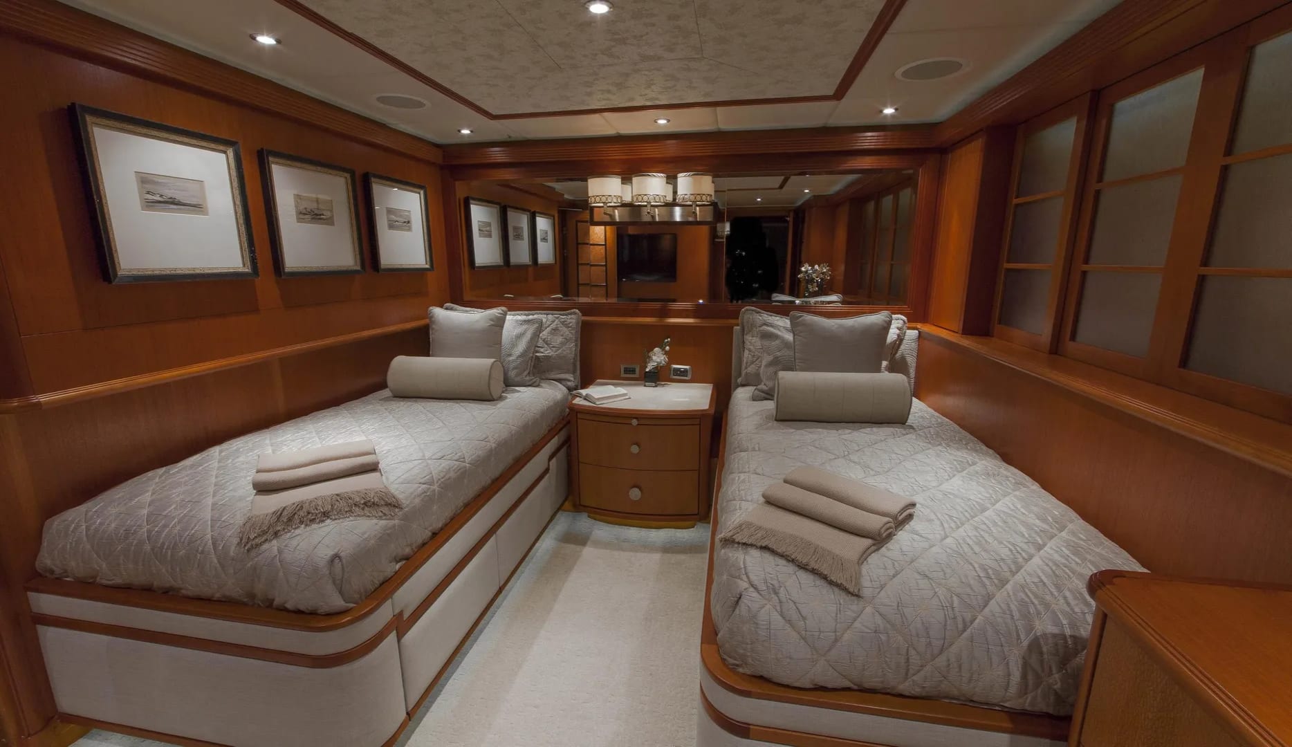 Skyfall provides a haven for up to 12 guests, with seven exquisite rooms that redefine comfort at sea. The split-level master suite is an indulgent retreat, offering panoramic views and a serene atmosphere to wake up to each morning. Additional VIP and twin cabins ensure that all guests experience the same level of care and elegance. As you settle into your private sanctuary, the gentle sway of the ocean becomes a lullaby, and the attentive crew is always on hand to cater to your every need.