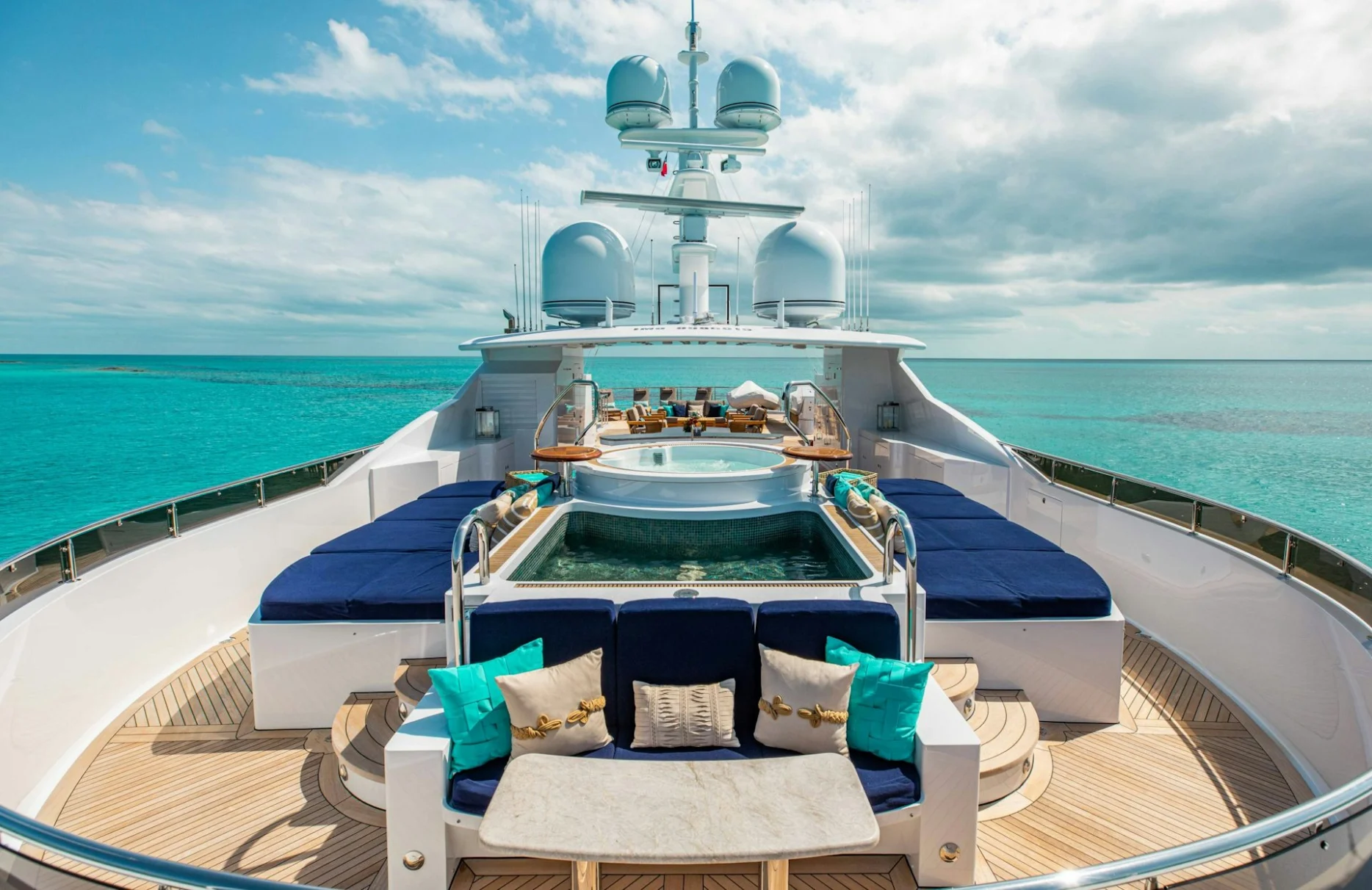 Embarking on a voyage aboard the majestic Skyfall unveils a world of refined elegance and exploration. Built by the esteemed Trinity Yachts, this 190-foot masterpiece offers an unparalleled experience of freedom and adventure. With its sleek design and cutting-edge engineering, Skyfall effortlessly glides through the ocean, inviting you to discover hidden coves and vibrant harbors. Spanning a remarkable range of 1,666 nautical miles at a top speed of 21 knots, she promises not only a journey of distance but of unmatched comfort.