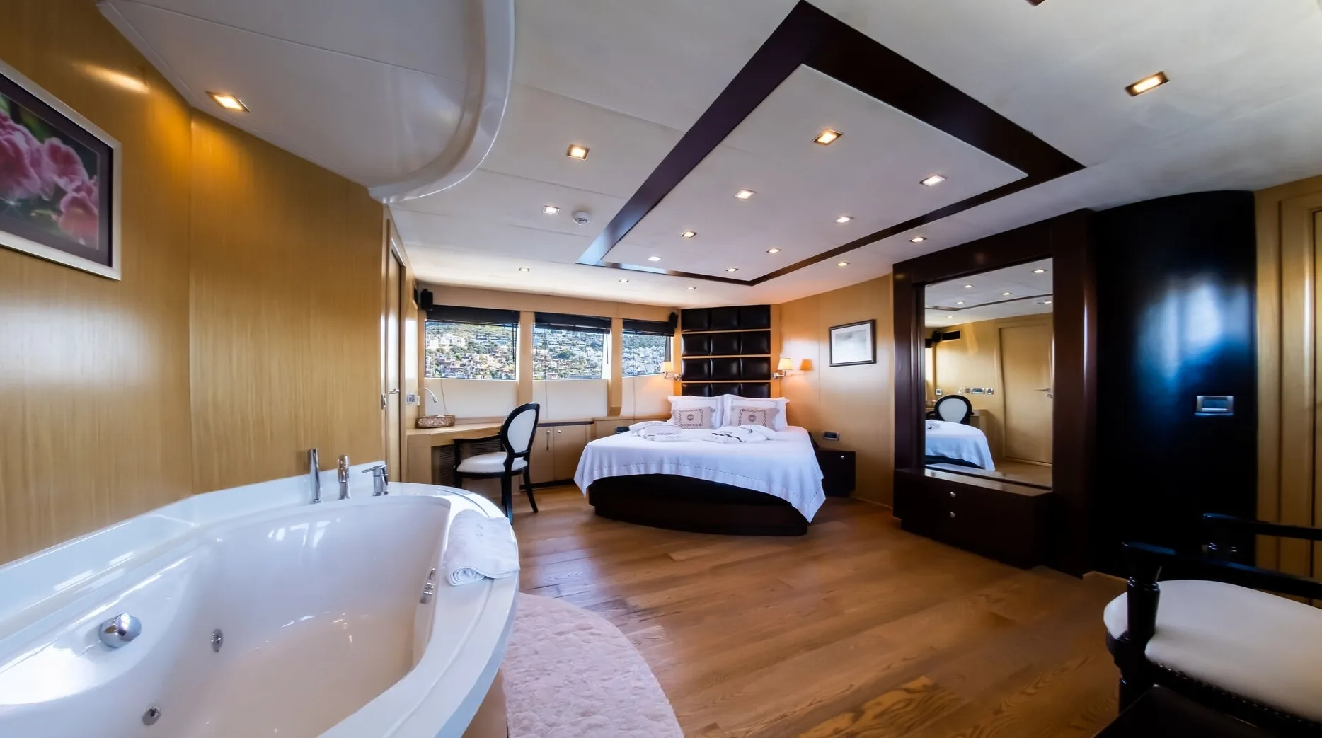 As evening descends and the stars emerge, Smyrna transforms into a haven of warmth and elegance. Her underwater lights cast a mesmerizing glow that dances across the waves, setting the perfect ambiance for an evening under the stars. The spacious decks invite leisurely afternoons basking in the sun or evenings of delightful conversation. Every inch of Smyrna is designed for your pleasure, from the serene lounges to the sophisticated dining areas, ensuring a seamless blend of relaxation and entertainment.