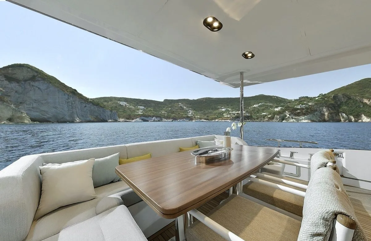 Solstice is a sanctuary of comfort and style, where every detail caters to your well-being and enjoyment. As you step into the sun-drenched interiors, the gentle hum of the waves is complemented by the seamless blend of indoor and outdoor living spaces. Unwind in air-conditioned comfort, stay connected with onboard Wi-Fi, or enjoy a cinematic experience with satellite TV. The yacht’s stabilizers ensure a smooth journey, while the sunpads invite you to soak in the sun’s warmth as you cruise to your next destination.