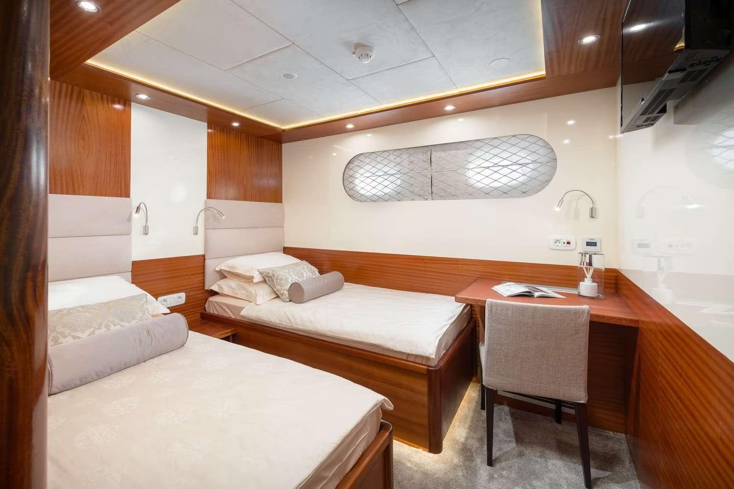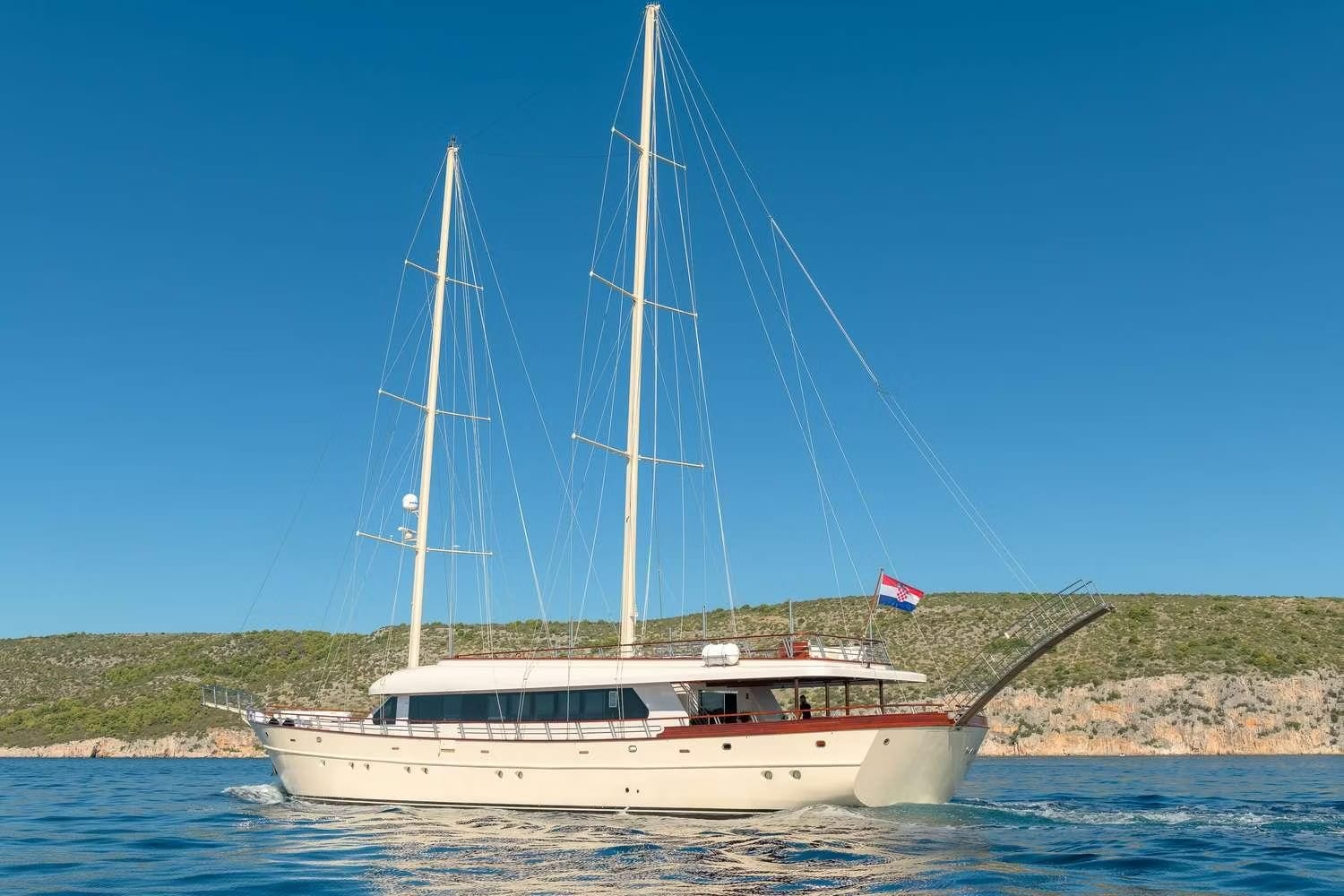 Step into a world of maritime elegance aboard the Son De Mar, a 45-meter masterpiece crafted by Odisej Shipyard. This exquisite gulet, launched in 2019, beckons you to explore the sun-drenched coastlines and azure waters from the comfort of her expansive decks. As you glide at a leisurely 9 knots, or a brisk 12 knots when the mood strikes, the world unfolds in a panorama of endless possibilities. With a dedicated crew of seven attending to every detail, your journey aboard the Son De Mar promises to be one of seamless indulgence and discovery. Whether you’re savoring the serene moments at sea or embarking on an adventure ashore, Son De Mar offers an unforgettable experience, blending timeless design with modern comforts.