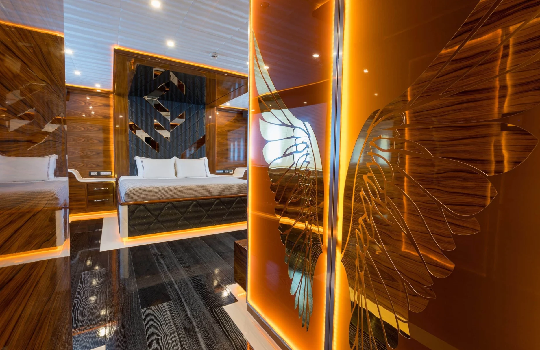 The Son Of Wind offers a haven of tranquility with five exquisitely appointed cabins, each designed to accommodate up to ten fortunate guests. As dawn breaks, the gentle lull of the waves accompanies your morning, offering a serene start to your day. The master suite provides a sanctuary of comfort and privacy, while three double cabins and a twin cabin offer a harmonious blend of elegance and functionality. Every detail has been considered to ensure that your nights are as restful as your days are invigorating, allowing you to awaken refreshed and ready to embrace the adventures that lie ahead.