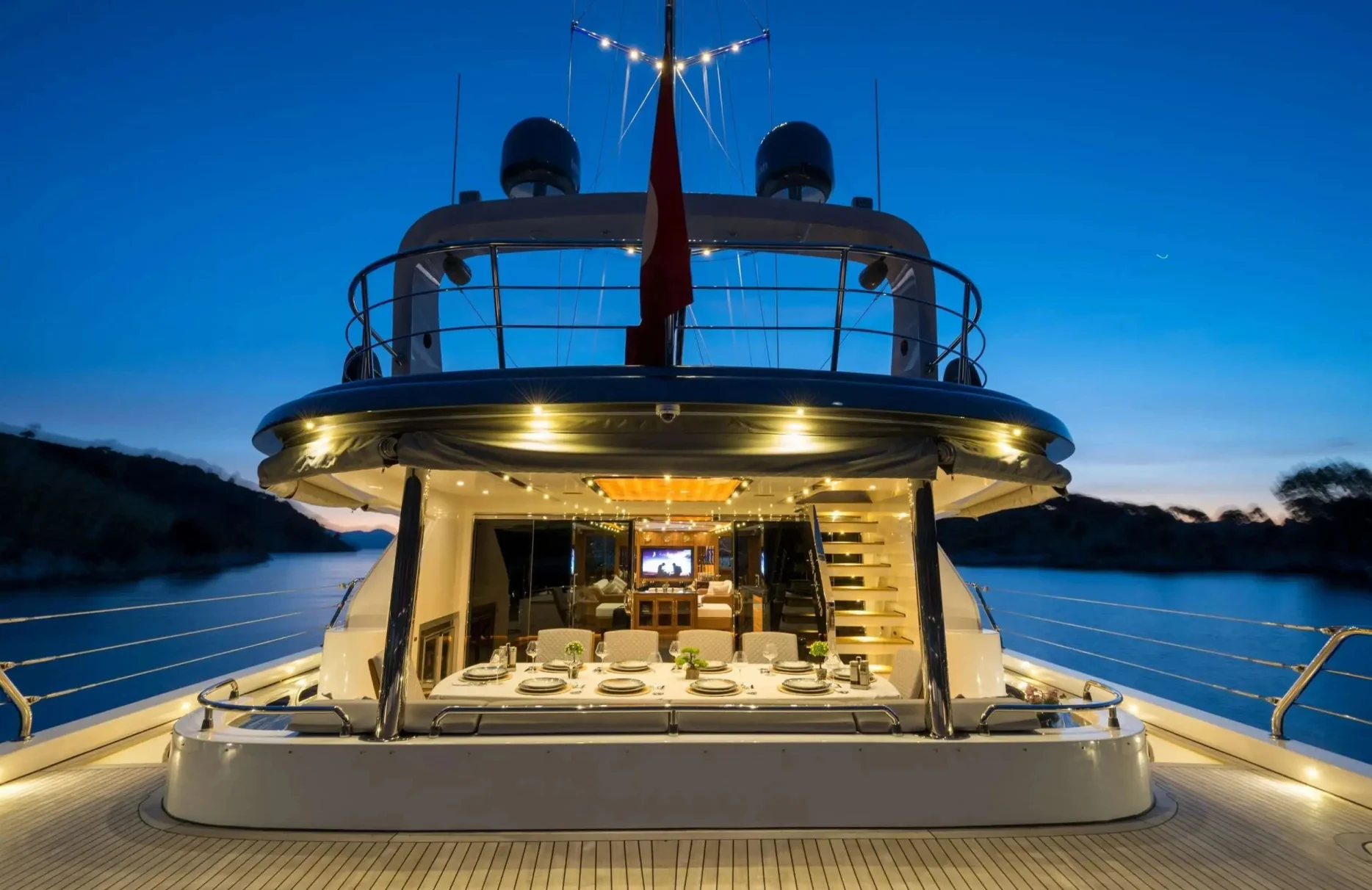 Aboard the Son Of Wind, each day unfolds with new possibilities. As daylight dances across the sun deck, find solace on the inviting sunpads, perfect for soaking up the warmth or indulging in a leisurely read. As evening descends, the yacht’s underwater lights cast a magical glow, elevating your twilight gatherings into enchanting soirées. Stay connected with high-speed Wi-Fi, ensuring that whether you’re streaming a favorite film or sharing your journey’s highlights, you’re always in touch with the world. The state-of-the-art air conditioning system ensures that every moment spent indoors is as refreshing as it is comfortable, providing a haven of tranquility amidst your maritime adventures.