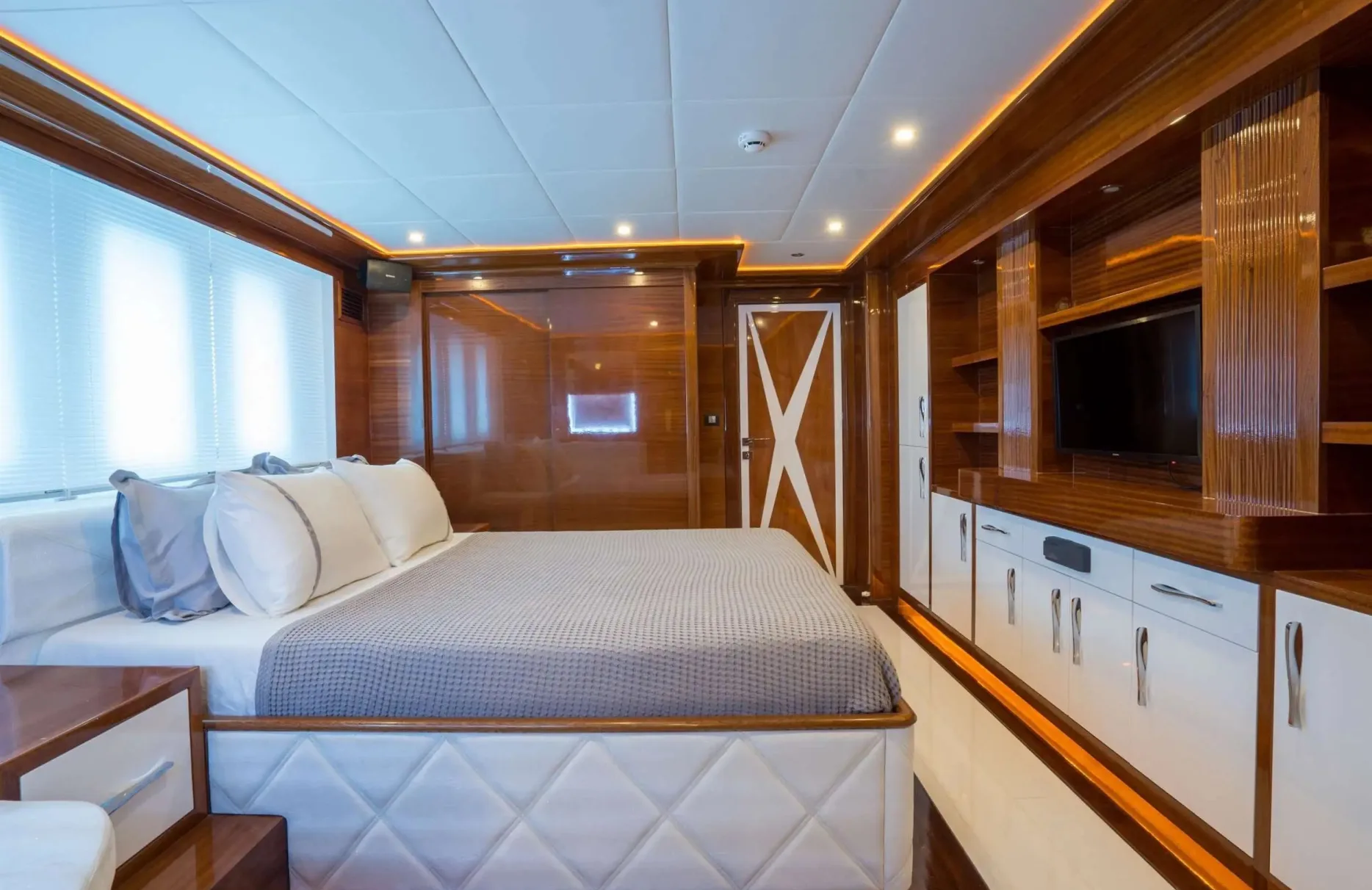 The Son Of Wind invites you to a realm where the sea meets sophistication. At 42 meters in length, this masterfully crafted vessel by Custom shipyard offers an unparalleled experience that harmonizes elegance and adventure. As you glide through azure waters, your senses are captivated by the seamless blend of performance and grace. Whether savoring the gentle ocean breeze or relishing the breathtaking sunsets, every moment aboard becomes a cherished memory. With the ability to host up to ten guests across its beautifully designed spaces, the Son Of Wind offers an intimate setting for exploring both the vastness of the sea and the allure of distant shores. Let the allure of this yacht guide you through a journey where relaxation and discovery coexist, inviting you to indulge in life’s finest offerings.