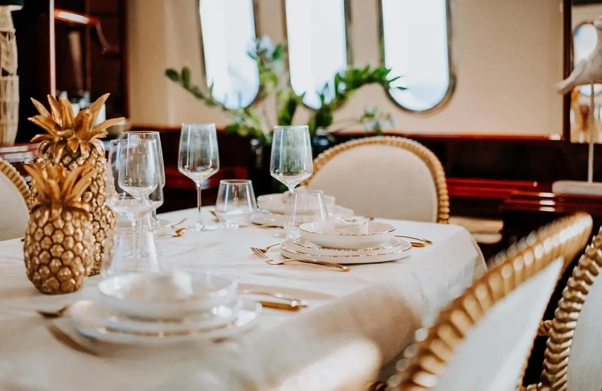 Sonrisa Septimo offers a sanctuary for up to eight guests across its four elegantly appointed cabins. Each room is a haven of tranquility, featuring plush linens and thoughtful decorative touches that enhance the feeling of home at sea. Wake up to the gentle sway of the yacht, with the promise of an invigorating morning coffee on the deck, where panoramic views of the Mediterranean await. Every cabin is designed to provide privacy and comfort, ensuring restful nights and relaxed mornings.