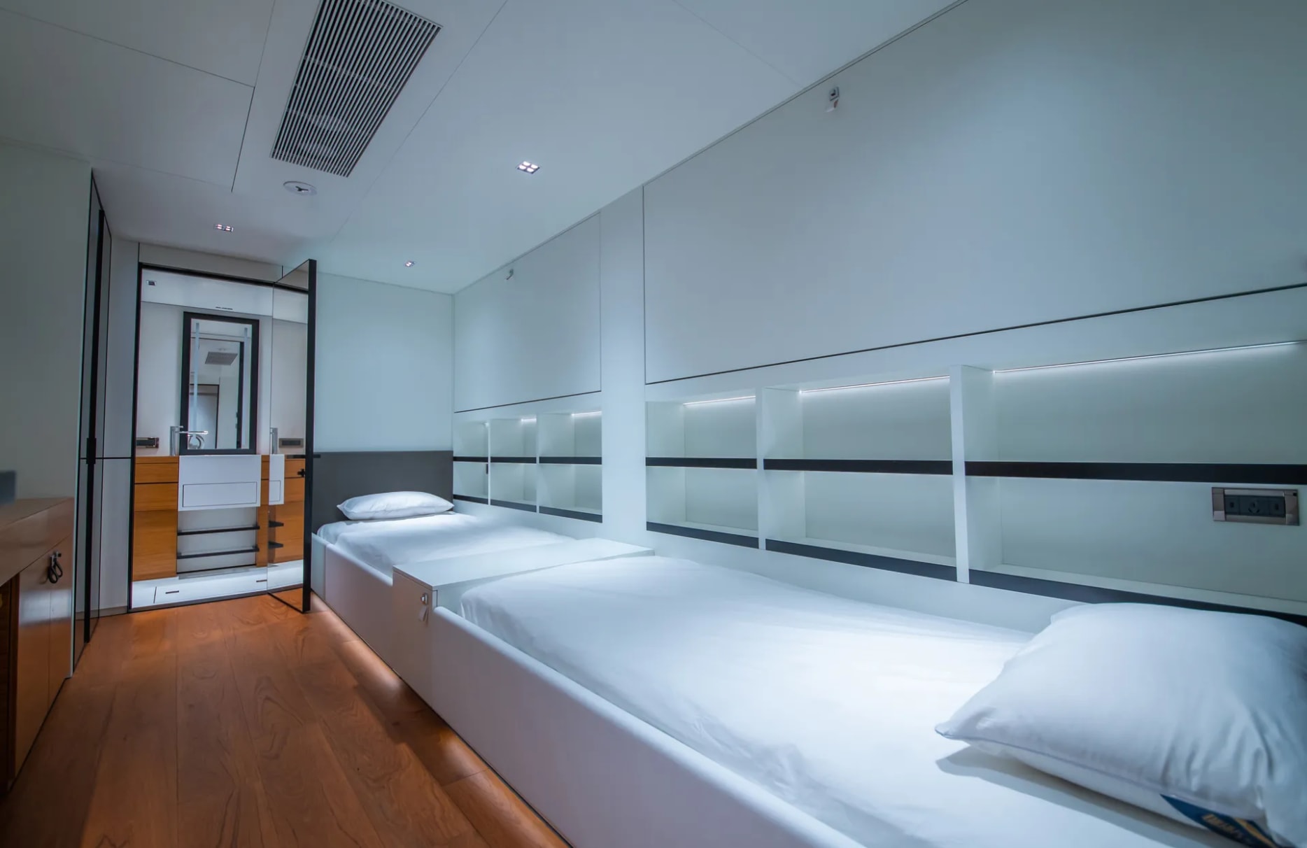 Space Cat welcomes up to eight guests into its embrace, offering a choice of four elegantly appointed cabins. The master suite exudes sophistication, while two double cabins and one twin cabin provide intimate yet spacious retreats for restful nights. Wake up to the gentle sway of the ocean, with every detail of your stay meticulously attended to by an attentive crew of eight, ensuring your comfort and satisfaction at every turn.