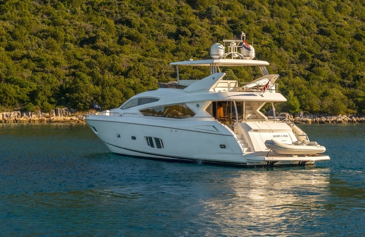 Embark on a journey with ‘Spirit Of The Sea,’ a vessel where elegance meets performance in a seamless dance across the ocean. Crafted by the esteemed Sunseeker, this 24-meter motor yacht offers a sophisticated ambience for the discerning traveler. As you glide through azure waters at a swift 22 knots, each day presents an invitation to explore both the yacht’s refined interiors and the captivating destinations beyond. Whether you are sunbathing on deck or savoring the tranquility of a secluded cove, ‘Spirit Of The Sea’ transforms the sea into your personal sanctuary.
